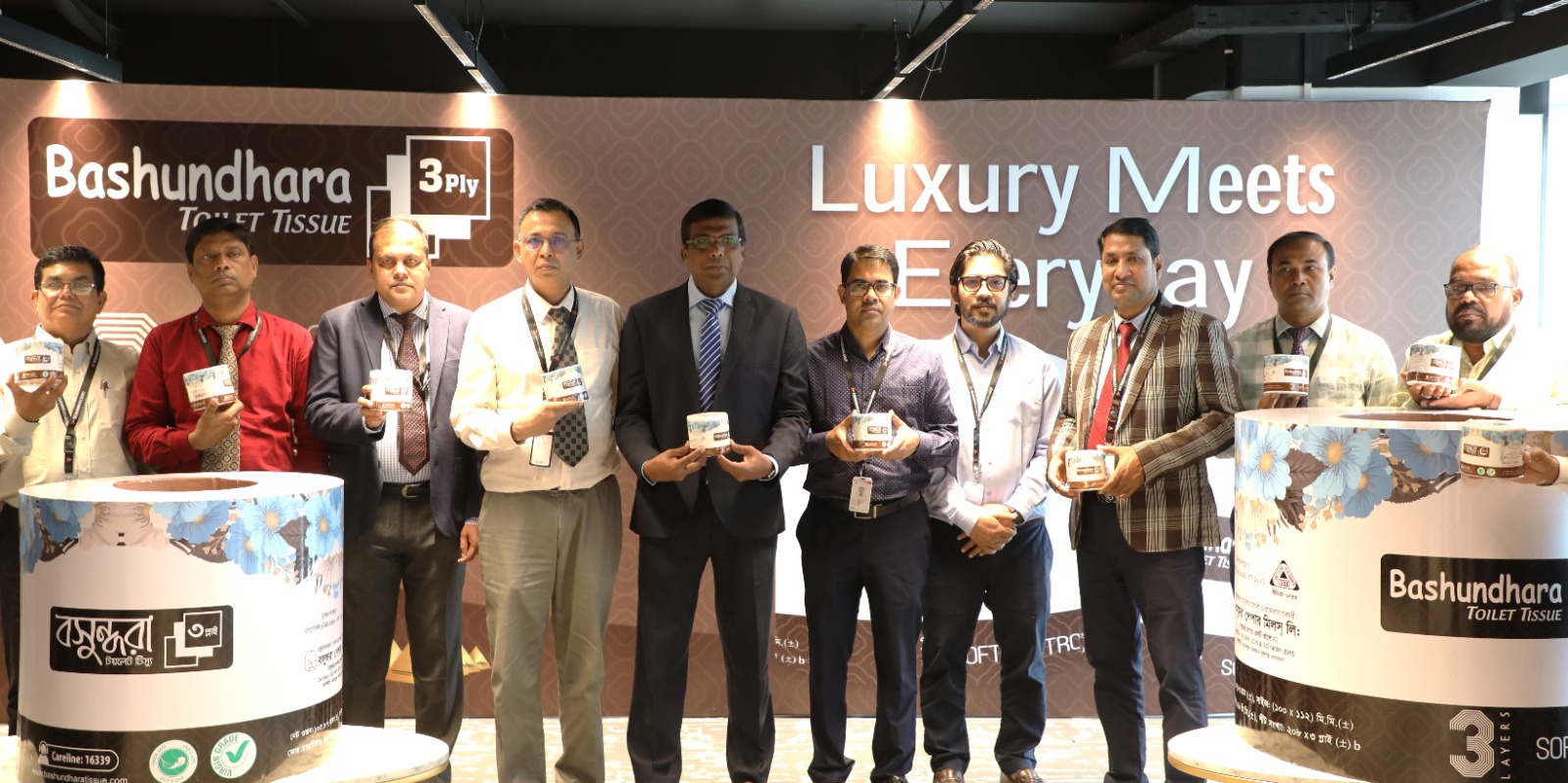 Staff Reporter : Bashundhara Tissue, a concern of the Bashundhara Group, officially unveiled its latest innovation, the “3-ply Bashundhara Toilet Tissue,” at a launching ceremony held at the Level-5 Training Hall of the Bashundhara Industrial Headquarters (BIHQ) in Dhaka on Wednesday.