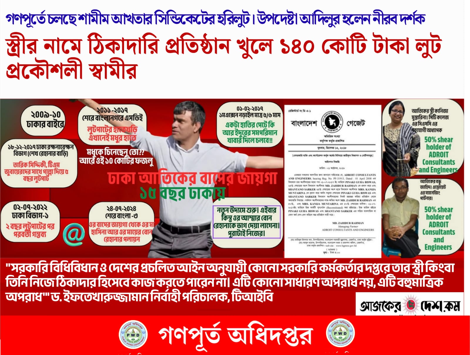 স্ত্রীর নামে ফার্ম খুলে ঠিকাদারি : “Adroit Consultants & Engineers” কেলেঙ্কারি