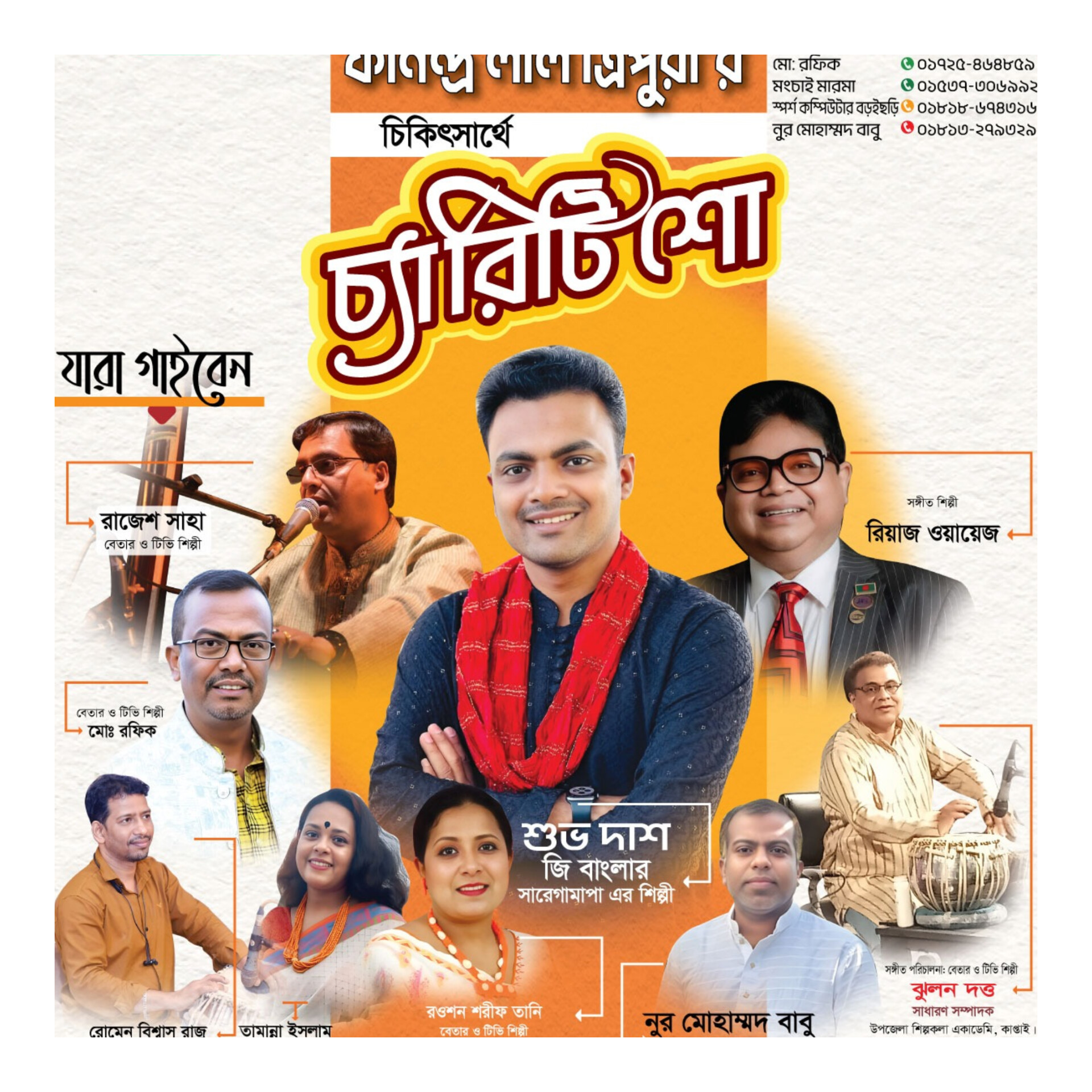এতে সঙ্গীত পরিবেশন করবেন কলকাতার জি বাংলার জনপ্রিয় রিয়েলিটি শোতে অংশ নেওয়া সারেগামাপা এর শিল্পী চট্টগ্রামের শুভ দাশ।