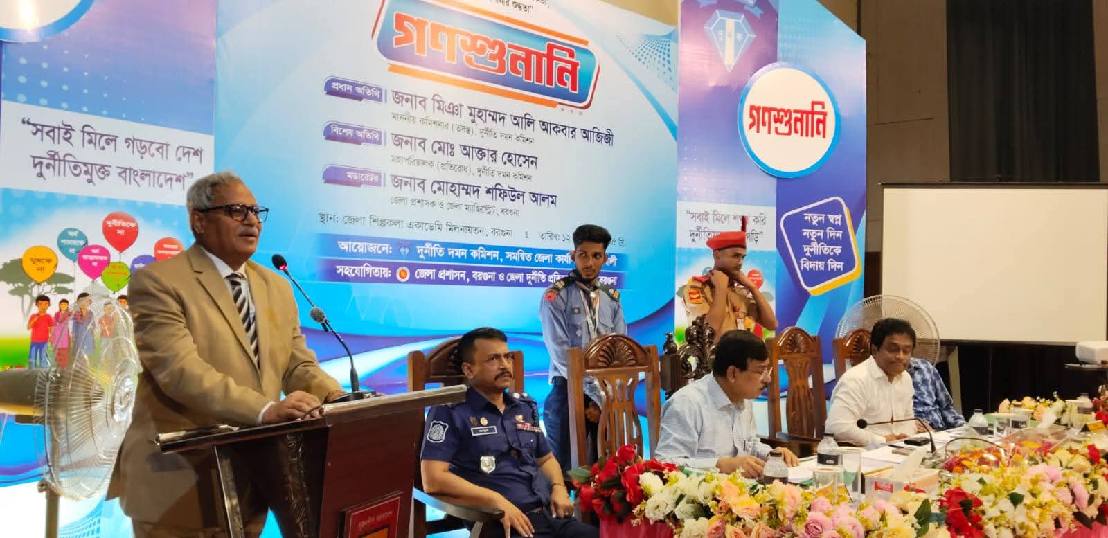 নিজস্ব প্রতিনিধি (বরগুনা) : ‘সবাই মিলে গড়বো দেশ, দুর্নীতিমুক্ত বাংলাদেশ’ এই শ্লোগানকে সামনে রেখে বরগুনায় দুর্নীতি দমন কমিশন (দুদক) এর ১৮৫ তম গণশুনানি অনুষ্ঠিত হয়েছে । দুর্নীতি দমন কমিশনের সমন্বিত জেলা কার্যালয় পটুয়াখালী আয়োজিত আজ (১২ অক্টোবর’২৫) জেলা শিল্প কলা একাডেমি মিলনায়তনে এ গণশুনানি হয়। আজকের গণশুনানিতে প্রধান অতিথি ছিলেন দুদকের মাননীয় কমিশনার(তদন্ত) মিঞা মুহাম্মদ আলি আকবার আজিজী।