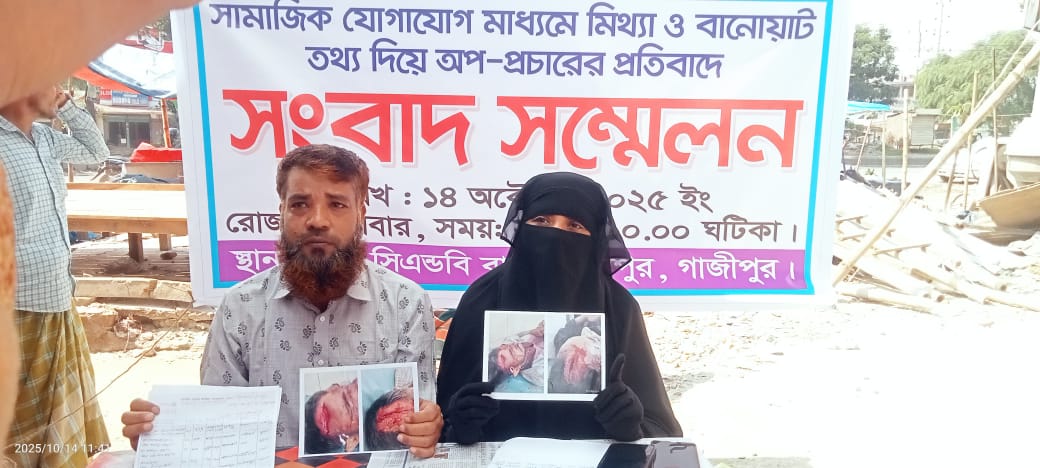 মঙ্গলবার(১৪ অক্টোবর) সকাল ১০ ঘটিকা সময় ১নং সিএন্ডবি বাজারে এ সংবাদ সম্মেলনের আয়োজন করা হয়। সংবাদ সম্মেলনে ভুক্তভোগী মোঃ নুরুল আমিন(৪৯)ও তার স্ত্রী আলফাতুন বেগম(৩৬)।