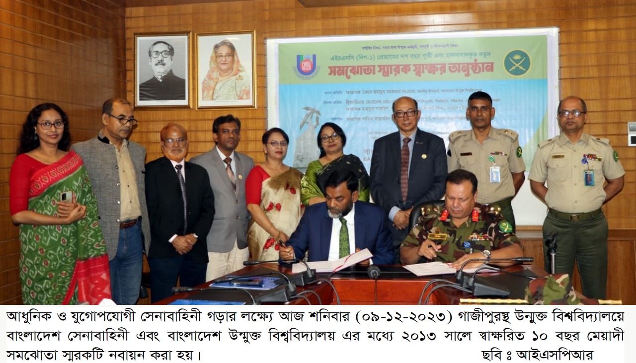 উক্ত অনুষ্ঠানে বাংলাদেশ সেনাবাহিনীর পক্ষে পরিচালক, শিক্ষা পরিদপ্তর ব্রিগেডিয়ার জেনারেল মোঃ রেজাউল ইসলাম, পিএসসি, পিএইচডি এবং বাংলাদেশ উন্মুক্ত বিশ্ববিদ্যালয়ের পক্ষে রেজিস্ট্রার ড. মহাঃ শফিকুল আলম সমঝোতা স্মারক নবায়ন করেন।