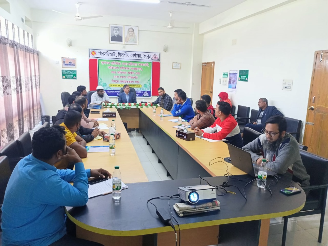 নিজস্ব প্রতিনিধি : আজ বুধবার ১৩ ডিসেম্বর বাংলাদেশ স্ট্যান্ডার্ড এন্ড টেস্টিং ইনস্টিটিউশন (বিএসটিআই) এর রংপুর বিভাগীয় কার্যালয়ের সভাকক্ষে সুশাসন প্রতিষ্ঠায় সেবা গ্রহীতাদের সাথে গণশুনানী, অভিযোগ প্রতিকার ব্যবস্থাপনা, তথ্য অধিকার আইন এবং সেবা প্রদান প্রতিশ্রæতি বিষয়ে অবহিতকরণ সভা অনুষ্ঠিত হয়। সভায় সভাপতিত্ব করেন মফিজ উদ্দিন আহমাদ, উপপরিচালক (মেট্রোলজি) ও বিভাগীয় অফিস প্রধান, বিএসটিআই, রংপুর।সভায় উপস্থিত ছিলেন ছিলেন রংপুর বিভাগের প্রতিনিধিত্বকারী ১৪ জন মিষ্টি উৎপাদনকারী প্রতিষ্ঠানের মালিক।