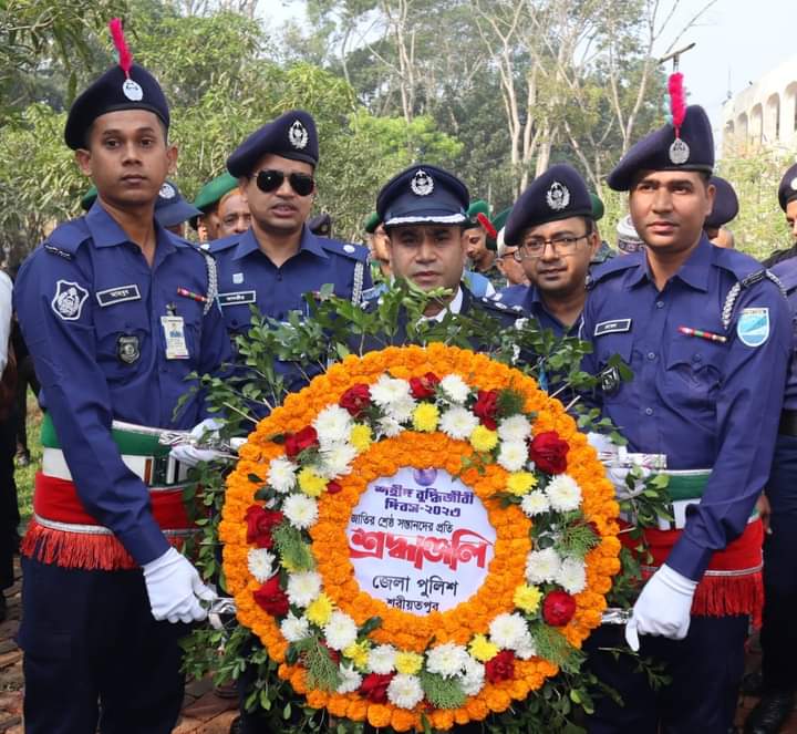 নিজস্ব প্রতিনিধি : জাতির সূর্য সন্তানদের স্মরনে শরীয়তপুর জেলা প্রশাসক কার্যালয় বঙ্গবন্ধুর প্রতিকৃতিতে পুষ্পস্তবক অর্পণ করেন শরীয়তপুর জেলার পুলিশ সুপার মোঃ মাহবুবুল আলম।