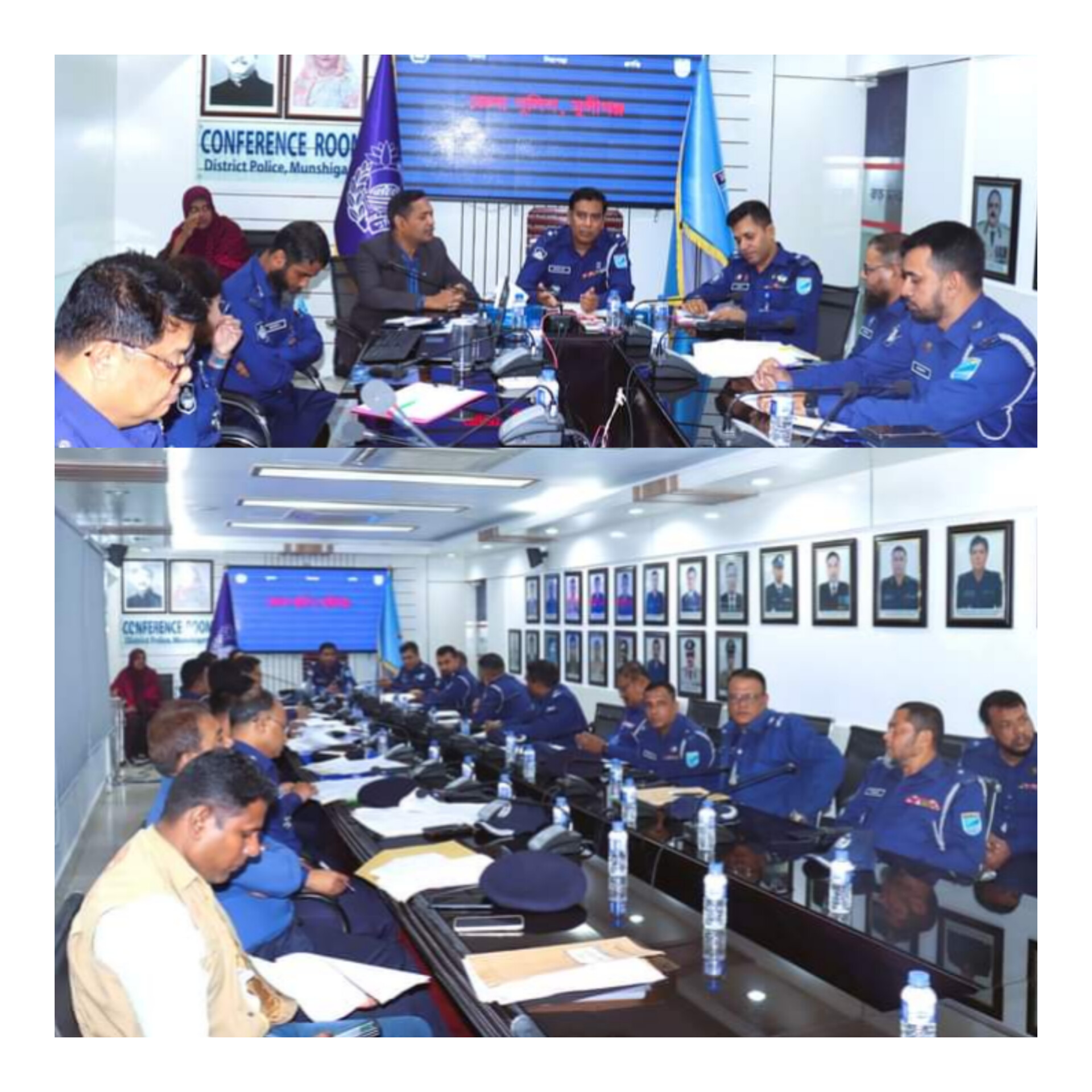 পাশাপাশি আইন-শৃঙ্খলা পরিস্থিতি স্বাভাবিক রাখতে সবাইকে সর্বোচ্চ পেশাদারি ও আন্তরিকতা নিয়ে কাজ করার নির্দেশ দেন। এসময় সভায় আরও উপস্থিত ছিলেন মুন্সীগঞ্জ জেলা পুলিশের উর্ধ্ব কর্মকর্তাগন এবং সকল থানা ও ফাঁড়ির ইনচার্জগন।