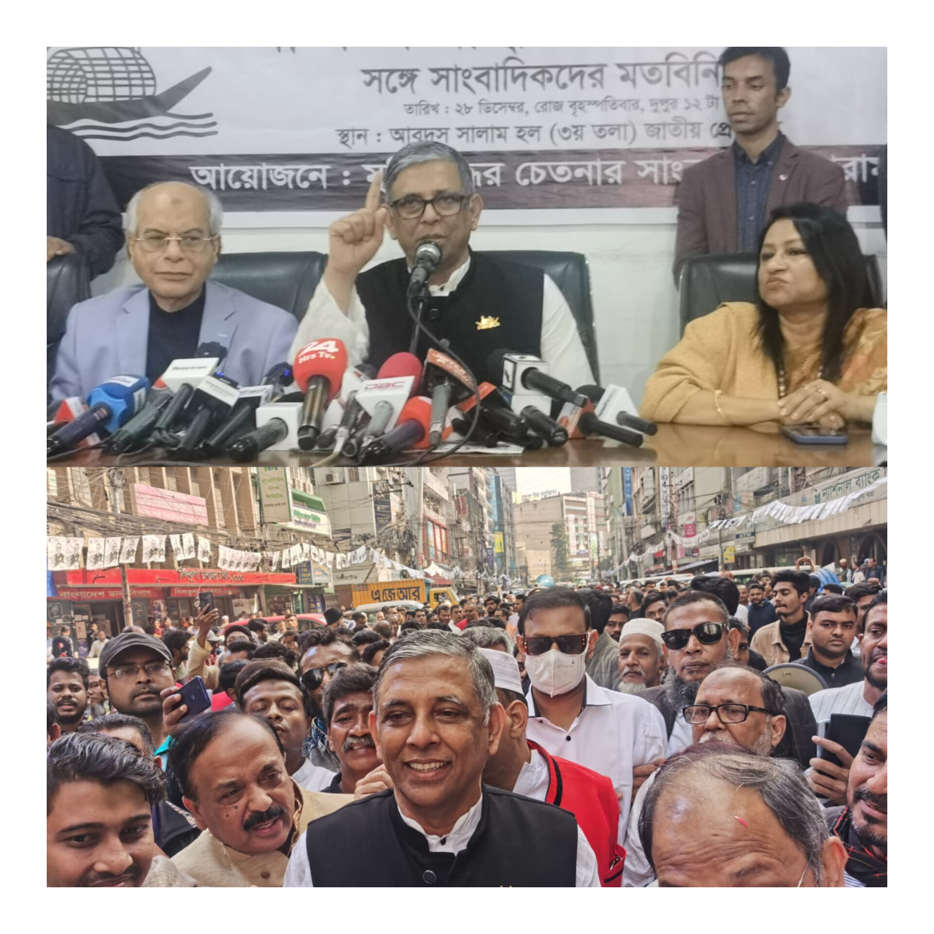 তিনি দুপুরে জাতীয় প্রেস ক্লাবে মুক্তিযুদ্ধের চেতনার সাংবাদিক ফোরাম আয়োজিত সাংবাদিকদের সাথে মত বিনিময় সভায় অংশ গ্রহণ করেন। শীর্ষ সাংবাদিক নেতা ইকবাল সোবাহান চৌধুরীর সভাপতিত্বে মত বিনিময় সভায় বক্তৃতা করেন বিএফইউজে’র সভাপতি ওমর ফারুক, বিএফইউজে’র সাবেক সভাপতি জনজুরুল আহসান বুলবুল, জাতীয় প্রেসক্লাবের সভাপতি ফরিদা ইয়াসমিন, সাধারন সম্পাদক শ্যামল দত্ত, বিএসএস এর এমডি আবুল কালাম আজাদ, বিএফইউজে’র সাবেক মহাসচির আব্দুল জলিল ভুইয়া, ঢাকা সাংবাদিক ইউনিয়নের সাবেক সভাপতি আব্দুল কুদ্দুস আফ্রেদী, ডিইউজে’র সাবেক সাধারন সম্পাদক আজিজুল ইসলাম ভুইয়া, ডিইউজে’র সভাপতি সোহেল হায়দায় চৌধুরী, বীর মুক্তিযোদ্ধা তরুন তপন চক্রবর্তী, ডিআরইউ এর সভাপতি সৈয়দ শুক্কুর আলী শুভ ও ঢাকা বহুমুখী সাংবাদিক সমবায় সমিতির সাধারন সম্পাদক মফিজুর রহমান বাবু। এ সময় ডিইউজে’র যুগ্ম সাধারন সম্পাদক খায়রুল আলম, জাস্টিস ফর জার্নালিস্টের কো-চেয়ারম্যান ওবায়দুল হক খান, ডিইউজে’র সাংগঠনিক সম্পাদক জিহাদুর রহমান জিহাদ, মুক্তিযুদ্ধের সাংবাদিক মঞ্চের সাধারন সম্পাদক জাহাঙ্গীর খান বাবু উপস্থিত ছিলেন। তারপর বাংলাদেশ ওয়ার্কাস পার্টি, তোপখানা রোড কেন্দ্রীয় কার্যালয়ে ১৪ দলের নেতৃবৃন্দের সাথে মতবিনিময় সভা করেন।