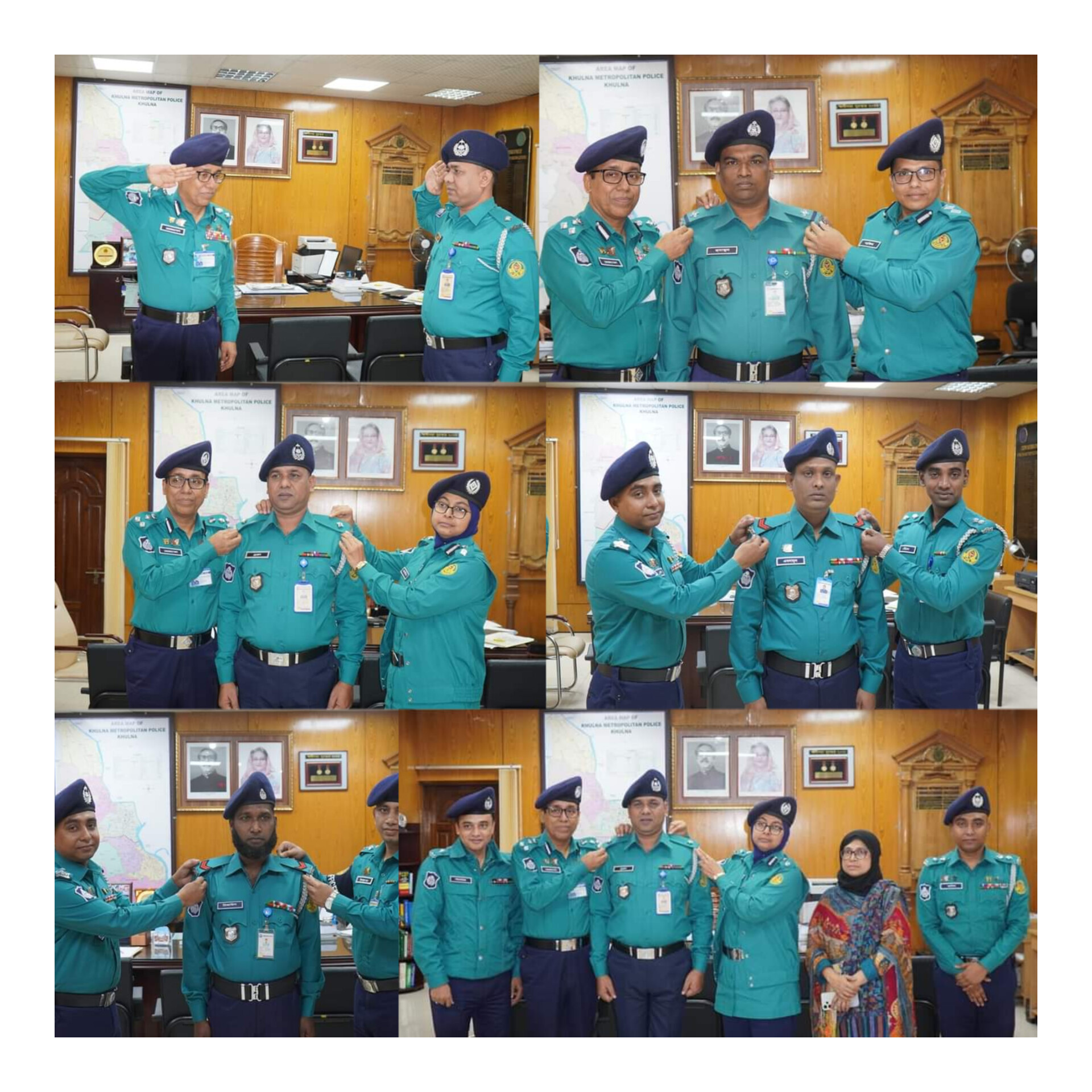 খুলনা মেট্রোপলিটন পুলিশ কেএমপি’র পুলিশ সদস্যদের র্যাংক ব্যাজ পরিধান এর কিছু দৃশ্য।