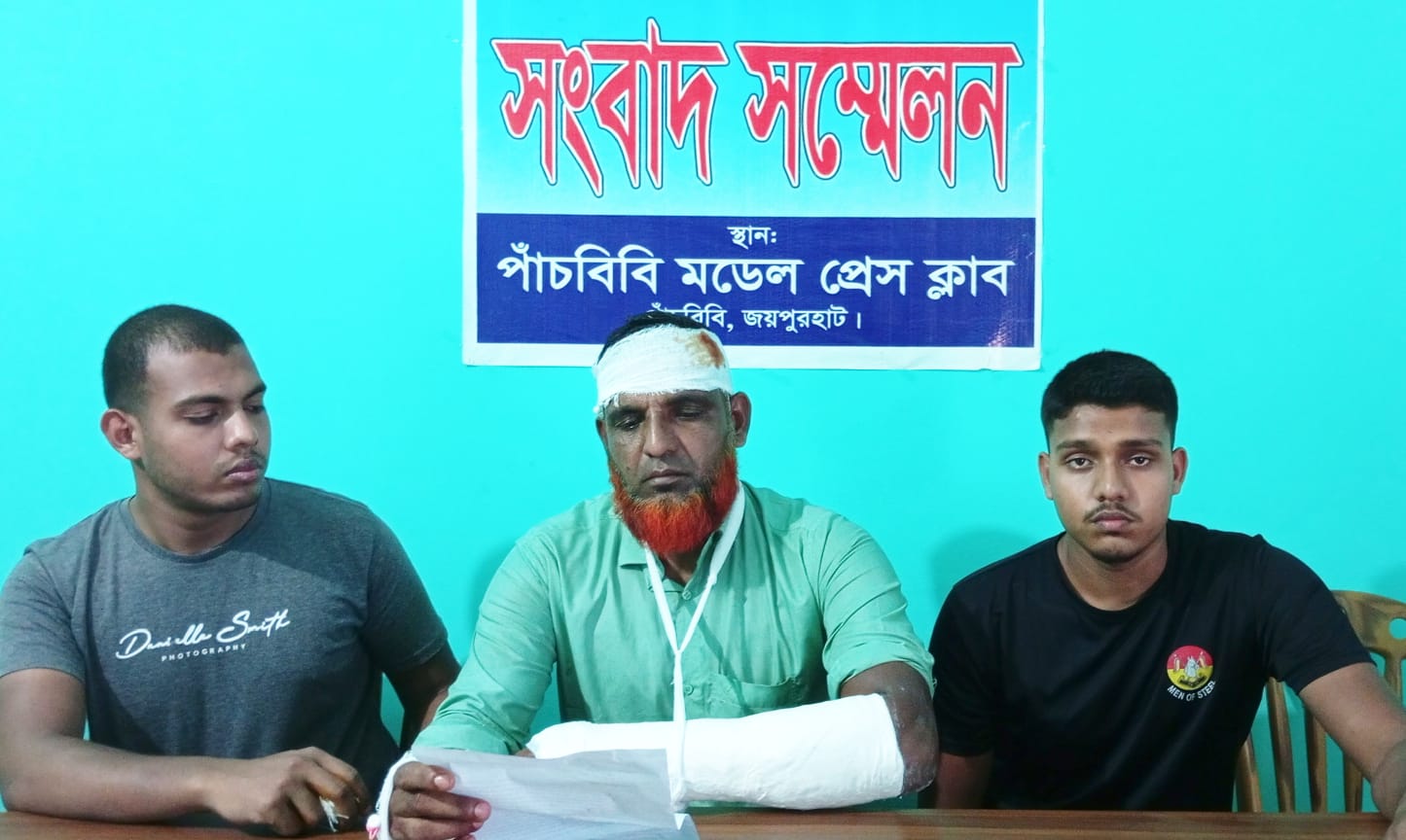 পাঁচবিবি (জয়পুরহাট) প্রতিনিধি : জয়পুরহাটের পাঁচবিবির বাগজানায় জমিজমার বিরোধে শত্রæতায় অবসরপ্রাপ্ত বিজিবি সদস্যকে মারধরের অভিযোগ পাওয়া গেছে। বিজিবি সদস্য হলেন, উপজেলার বাগজানা গ্রামের মৃত আঃ হালিম মুন্সির ছেলে মোঃ অহিদুজ্জামান লুটু (৪৮)। আহতবস্থায় প্রতিবেশীরা তাকে উদ্ধার করে মহিপুর স্বাস্থ্য কমপ্লেক্সে ভর্তি করেন। প্রতিকারের আশায় তিনি থানায় লিখিত অভিযোগের পাশাপাশি সংবাদ সম্মেলণ করেন।
