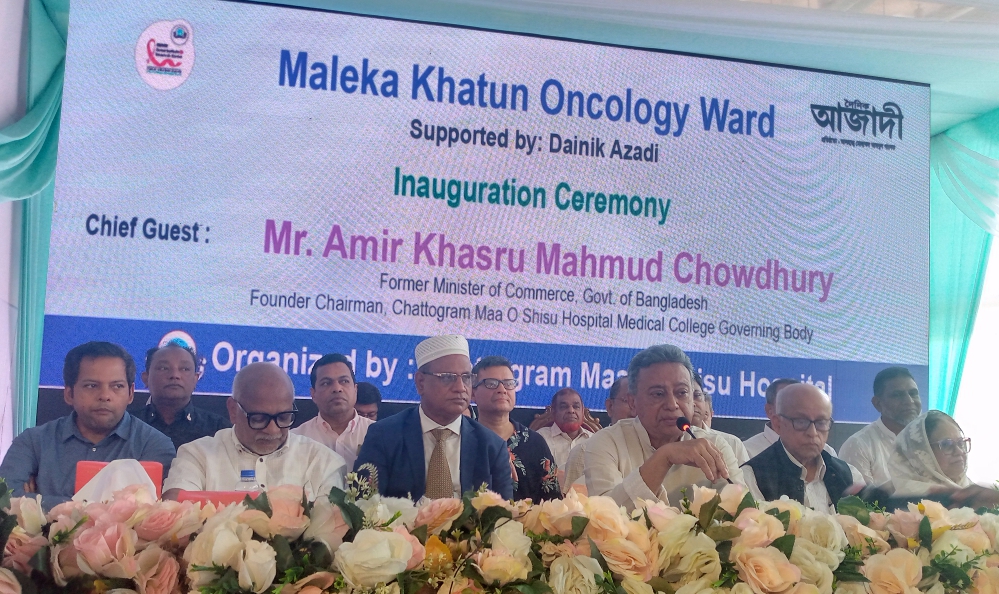 বিভিন্ন কার্যক্রম প্রধান অতিথি আমীর খসরু মাহমুদ চৌধুরী বলেন, আমাদের সামাজিক উন্নয়নে সকলকে এগিয়ে আসতে হবে। নিম্ন আয়ের মানুষ উপকৃত হয় এই রকম কাজ আমাদের করতে হবে। এই ধরনের প্রতিষ্ঠান নিম্ন আয়ের মানুষের সেবায় প্রতিষ্ঠিত একটি হাসপাতাল। এই হাসপাতালের উন্নয়নে সমাজের সকল শ্রেণির মানুষকে এগিয়ে আসতে হবে। ক্যান্সার একটি মরনব্যাধি রোগ। এই রোগে আক্রান্ত ব্যক্তির পরিবারও এর ভুক্তভোগী। চিকিৎসার মাধ্যমে আমরা তাদের পাশে থাকতে পারি, আক্রান্ত রোগীকে একটু স্বস্তি দিতে পারি। তিনি আজাদী পরিবারকে এই মহতী উদ্যোগে এগিয়ে আসার জন্য ধন্যবাদ জ্ঞাপন করেন। যথাযথ উদ্যোগ গ্রহণ করা গেলে এই ক্যান্সার হাসপাতাল শ্রেষ্ঠ প্রতিষ্ঠান হিসেবে সমাদৃত হবে। মা ও শিশু হাসপাতালের নিয়ন্ত্রণাধীন অনেকগুলো মানব সেবী প্রতিষ্ঠান গড়ে উঠেছে। এই হাসপাতালের তত্ত্বাবধানে পরিচালিত চট্টগ্রাম মা ও শিশু হাসপাতাল মেডিকেল কলেজ চিকিৎসা শিক্ষা ব্যবস্থায় বর্তমানে দেশের শ্রেষ্ঠ পর্যায়ে উন্নিত হয়েছে।