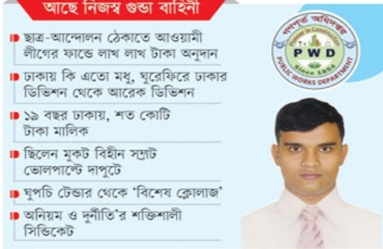 রাজনৈতিক ভোলপাল্টে আগের মতোই দাপট দেখাচ্ছেন তিনি। প্রকৌশলী হলেও তার হাত অনেক লম্বা। তিনি পারেন না, এমন কোনো কাজ নেই। আছে নিজস্ব গুন্ডা বাহিনীও। এই সিন্ডিকেটের অন্যতম হোতা বেশ কয়েকজন নির্বাহী প্রকৌশলী। তবে অনেক ক্ষেত্রেই তিনি প্রধান প্রকৌশলী’র চেয়ে প্রভাবশালী এই নির্বাহী প্রকৌশলী।