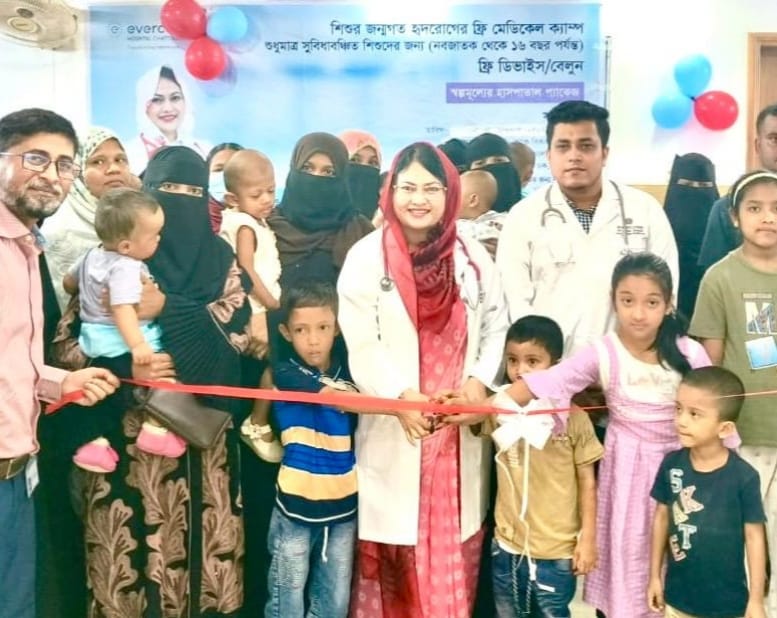 স ম জিয়াউর রহমান, (চট্টগ্রাম) : বিনামূল্যে শিশুদের হৃদরোগ চিকিৎসা প্রদানের লক্ষ্যে বন্দরনগরীর সর্ববৃহৎ হাসপাতাল, এভারকেয়ার হসপিটাল চট্টগ্রাম কক্সবাজার জেলায় হাসপাতাল সড়কে অবস্থিত শেভরন ক্লিনিক্যাল ল্যাবরেটরীতে আজ ১২ মে সকাল ৯ টা থেকে বিকাল ৫ টা পর্যন্ত ফ্রি মেডিকেল ক্যাম্প আয়োজন করে। ক্যাম্পের নেতৃত্ব দেন এভারকেয়ার হসপিটালস, বাংলাদেশ (ঢাকা ও চট্টগ্রাম)-এর শিশু হৃদরোগ বিভাগের প্রতিষ্ঠাতা এবং সিনিয়র কনসালটেন্ট ও কো-অর্ডিনেটর ডা. তাহেরা নাজরীন। তিনি দিনব্যাপী হৃদরোগে আক্রান্ত শিশুদের বিনামূল্যে চিকিৎসা পরামর্শ প্রদান করেন এবং স্বল্পমূল্যে ২ডি ও কালার ডপলার ইকোকার্ডিওগ্রাফি পরীক্ষা করেন।
