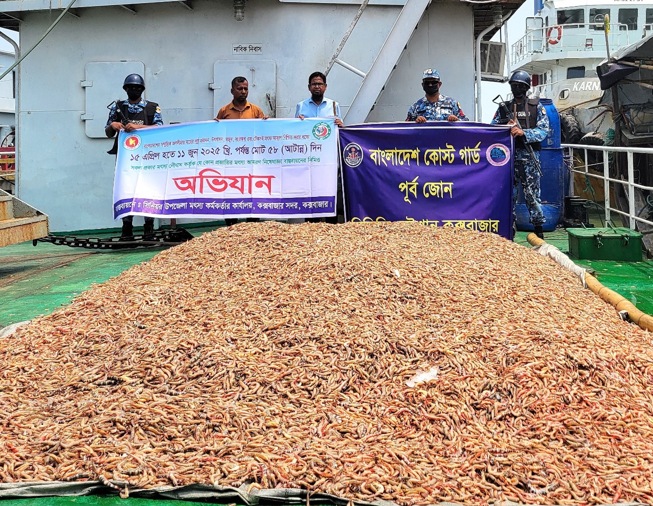এরই ধারাবাহিকতায় গোপন সংবাদের ভিত্তিতে আজ ১৩ মে ২০২৫ মঙ্গলবার মধ্যরাত ১ টায় কোস্ট গার্ড স্টেশন কক্সবাজার কর্তৃক কক্সবাজারের সমিতি পাড়া ঘাট সংলগ্ন এলাকায় একটি বিশেষ অভিযান পরিচালনা করা হয়। অভিযান চলাকালীন উক্ত এলাকায় ৭ লক্ষ ৫০ হাজার টাকা মূল্যের ২ হাজার ৫ শত কেজি সামুদ্রিক মাছসহ ৩ জন মাছ বিক্রেতাকে আটক করা হয়।