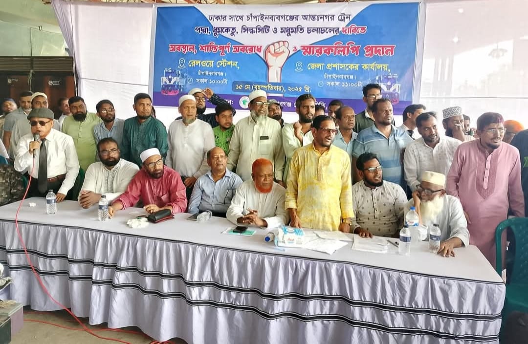কর্মসূচীর কারনে চাঁপাইনবাবগঞ্জ থেকে রাজশাহীগামী মল্লিকা কমিউটার ট্রেন স্টেশনে আটকা পড়ে প্রায় ৩০ মিনিট। সকাল ১০ টা ১৫ মিনিটের পরিবর্তে ট্রেনটি পনে ১১টায় রাজশাহী উদ্দেশ্যে ছেড়ে যায়।