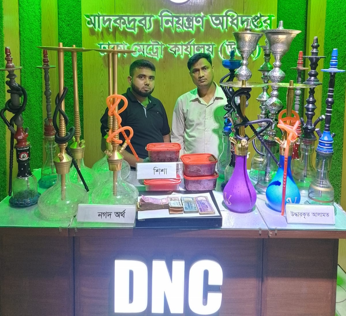 সাঁড়াশি অভিযানের পর সেখান থেকে ২৬টি হুঁকা, সাত কেজি আমদানি নিষিদ্ধ সিসা ও মাদক বিক্রির নগদ অর্থ উদ্ধার করা হয়।