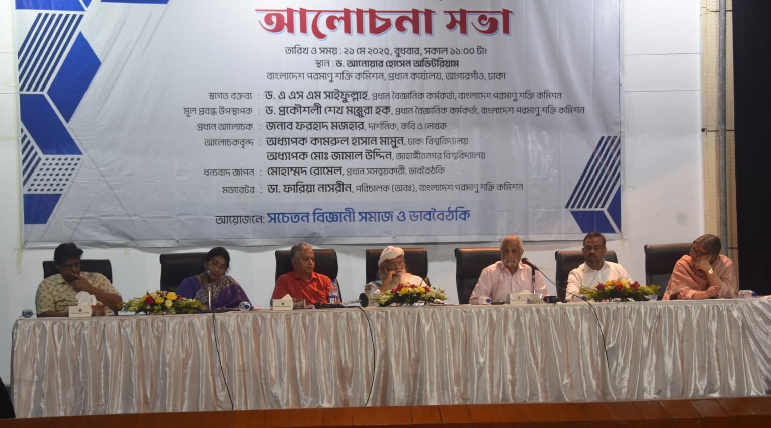 নিজস্ব প্রতিবেদক : বাংলাদেশের সচেতন বিজ্ঞানী সমাজ ও ‘ভাববৈঠকি’ র আয়োজনে “বাংলাদেশে পরমাণু বিজ্ঞান বিকাশে সম্ভাবনা, সংকট ও উত্তরণের উপায়” শীর্ষক আলোচনা সভা আজ ২১ মে ২০২৫ ইং তারিখে রোজ বুধবার বাংলাদেশ পরমাণু শক্তি কমিশনের প্রধান কার্যালয়ের ডঃ আনোয়ার হোসেন অডিটোরিয়ামে অনুষ্ঠিত হয়। বাংলাদেশের পরমাণু বিজ্ঞান গবেষণায় চলমান অস্থিরতায় সংশ্লিষ্ট বিজ্ঞানী সমাজ উদ্বিগ্ন। সে প্রেক্ষিতে দেশের বিজ্ঞান গবেষণার সর্ববৃহৎ প্রতিষ্ঠান বাংলাদেশ পরমাণু শক্তি কমিশনের বিভিন্ন সংকট ও তার চ্যালেন্জ মোকাবেলার উপায়সমুহ নিয়ে বৃহৎ আলোচনা হয়।