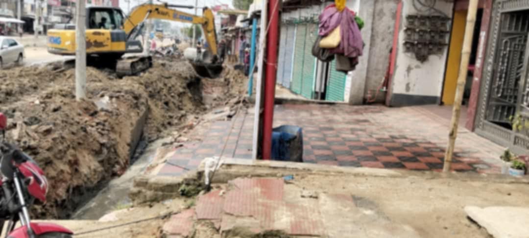 মঙ্গলবার (২০ মে) দুপুরে ওই দুটি ভবনের সামনে ড্রেন নির্মাণের জন্য মাটি খনন করা সময় দেখা যায় ভবন দুটিকে বাঁচিয়ে সামনের দিকে বাঁকা করে মাটি কাটা হচ্ছে।