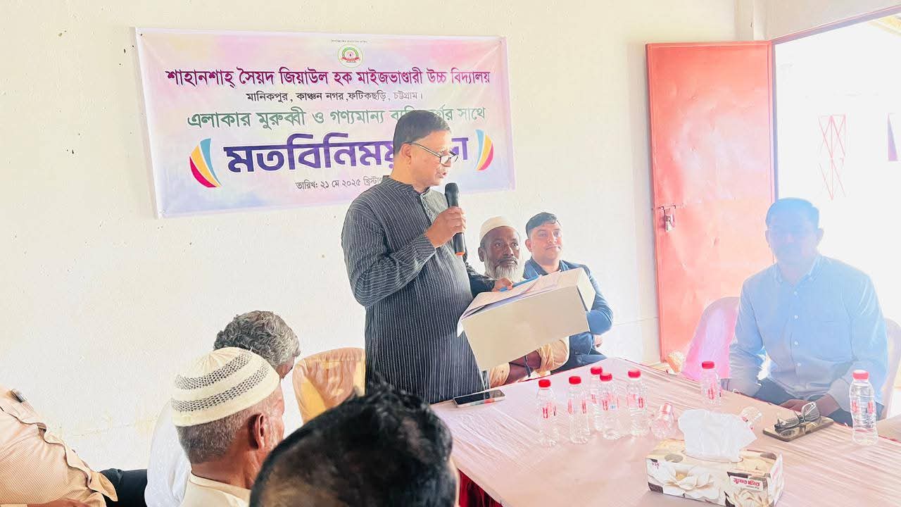 স ম জিয়াউর রহমান, (চট্টগ্রাম) : শাহানশাহ্ সৈয়দ জিয়াউল হক মাইজভাণ্ডারী উচ্চ বিদ্যালয়ের ব্যবস্থাপনায় এলাকার মুরুব্বি ও গণ্যমান্য ব্যক্তিদের নিয়ে মতবিনিময় সভা বিদ্যালয়ের হল কক্ষে অনুষ্ঠিত হয়।