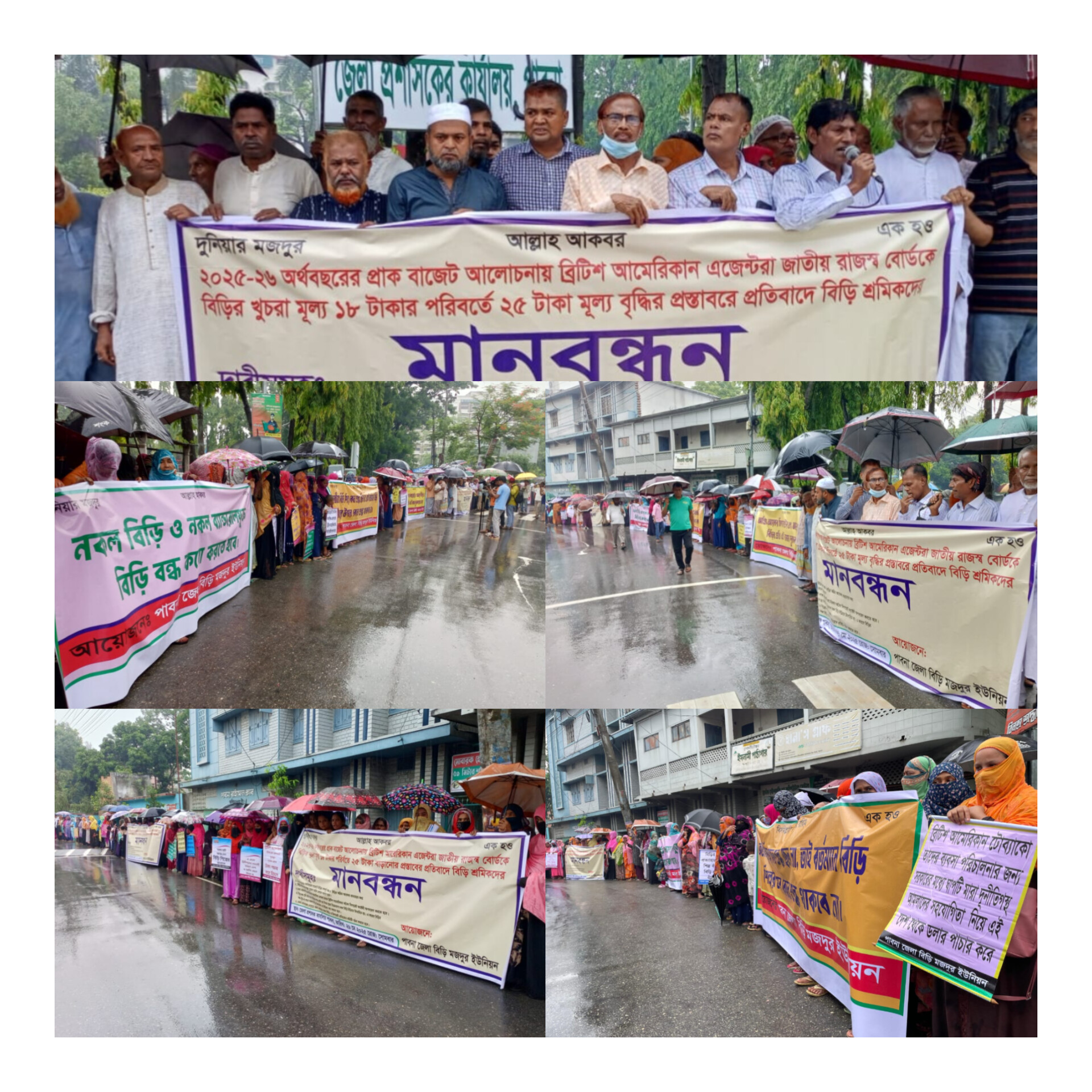 মানববন্ধনে বক্তারা বলেন, বিড়ি একটি দেশীয় শ্রমিক নির্ভর শিল্প। প্রতিষ্ঠা লগ্ন থেকে বিড়িতে কোনো শুল্ক ছিল না। কিন্তু দেশি-বিদেশী কিছু এনজিও এবং বিদেশী বহুজাতিক কোম্পানির ষড়যন্ত্রে বিড়ি কারখানা গুলো ক্রমান্বয়ে বন্ধ হচ্ছে। ফলে শিল্পটি আজ ধ্বংসের দ্বারপ্রান্তে এবং বেকারত্বের আশঙ্কায় দিন কাটাচ্ছে লক্ষ লক্ষ অসহায় নারী ও পুরুষ শ্রমিক। সুতরাং বিড়ি শিল্প রক্ষার্থে আগামী বাজেটে বিড়ির শুল্ক এবং অগ্রিম আয়কর সম্পূর্ণ ভাবে প্রত্যাহার করতে হবে। এছাড়া নকল বিড়ি ও সিগারেট উৎপাদন এবং বিক্রি বন্ধে জেলা প্রশাসকের নেতৃত্বে জেলা পর্যায়ে নকল বিড়ি প্রতিরোধ কমিটি গঠন করতে হবে।
