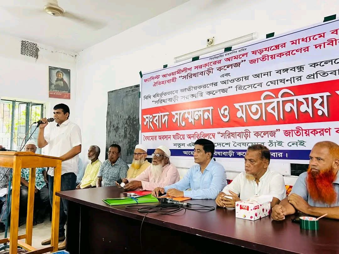 সরকারি বঙ্গবন্ধু কলেজের পরিবর্তিত নাম “সরিষাবাড়ী সরকারি কলেজ” নামকরণ বাতিলের দাবীতে সংবাদ সম্মেলন