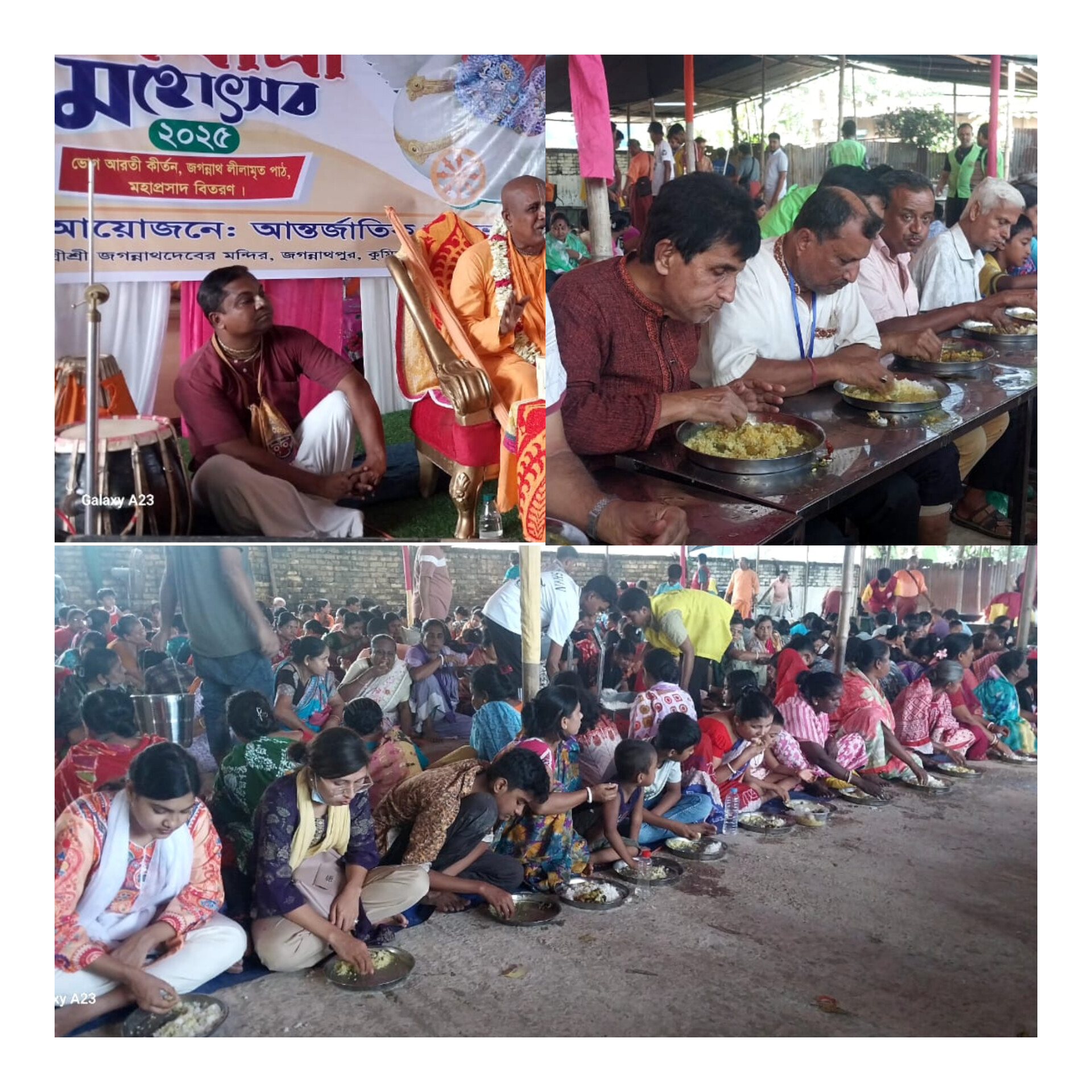 তাপস চন্দ্র সরকার (কুমিল্লা) : আজ বুধবার ২ জুলাই, কুমিল্লা পাথুরিয়াপাড়াস্থ গুন্ডিচা মন্দিরে আন্তর্জাতিক কৃষ্ণভাবনামৃত সংঘ (ইসকন) কুমিল্লার যৌথ আয়োজনে দুপুর ১২টা হতে যথাক্রমে শ্রী শ্রী জগন্নাথ-বলদেব-সুভদ্রাদেবীর ভোগ আরতি শেষে দুপুরবেলা উৎসবে আগত ভক্ত শ্রোতার মাঝে মহাপ্রসাদ বিতরণ করা হয়। এতে হাজারো ভক্ত শ্রোতার সমাগম ঘটে।