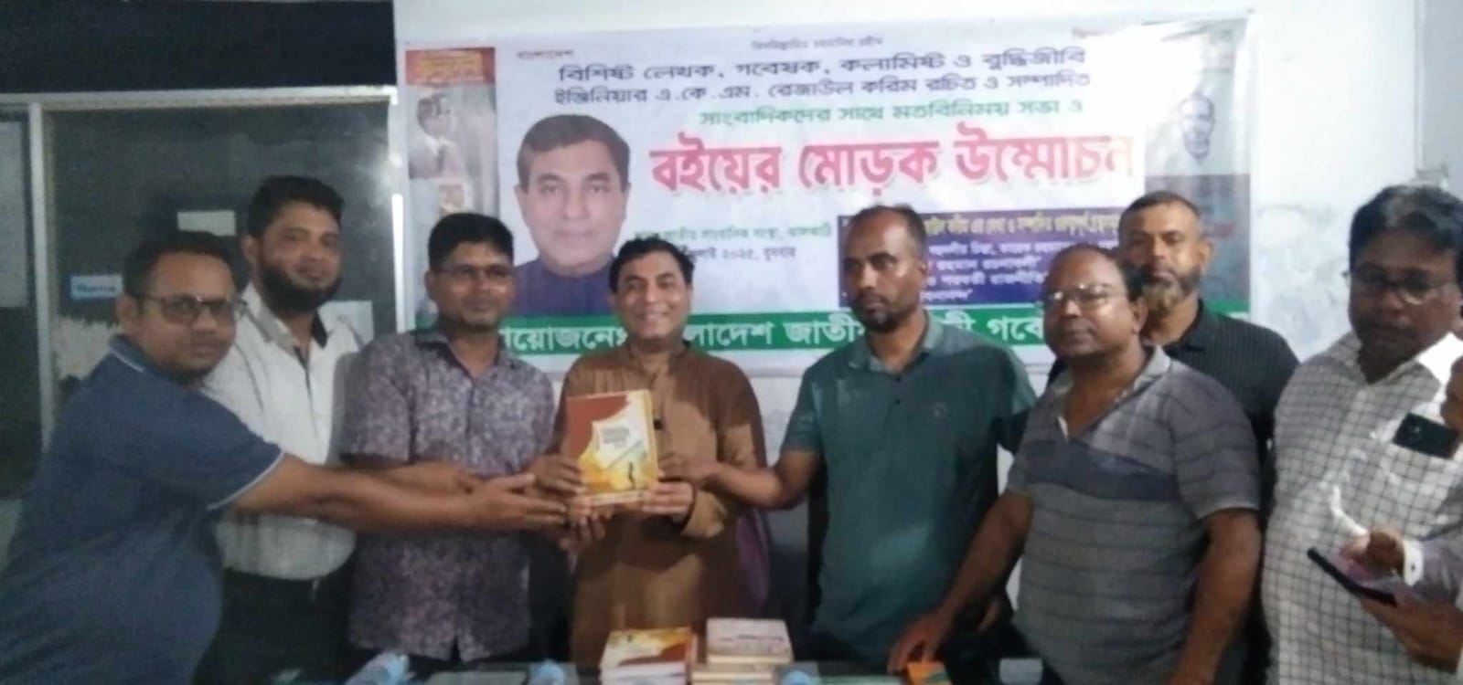 ঝালকাঠি প্রতিনিধি : বিশিষ্ট লেখক ও গবেষক ইঞ্জিনিয়ার এ.কে.এম. রেজাউল করিমের লেখা বইয়ের মোড়ক উম্মোচন ও মতবিনিময় সভা অনুষ্ঠিত হয়েছে। বুধবার সন্ধ্যায় জাতীয় সাংবাদিক সংস্থা ঝালকাঠি জেলা শাখার হলরুমে সংস্থার সভাপতি মো: এমদাদুল হক স্বপনের সভাপতিত্বে ও সংস্থার সাধারণ সম্পাদক উপাধ্যক্ষ রিয়াজুল ইসলাম বাচ্চু’র সঞ্চালনায় প্রধান অতিথি ছিলেন ঝালকাঠি-১(রাজাপুর-কাঠালিয়া) আসনের সংসদ সদস্য প্রার্থী ও জাতীয়তাবাদী গবেষনা কেন্দ্রের চেয়ারম্যান বিশিষ্ট লেখক, গবেষক, কলামিস্ট ও টকশো ব্যক্তিত্ব ইঞ্জিনিয়ার এ.কে.এম. রেজাউল করিম।