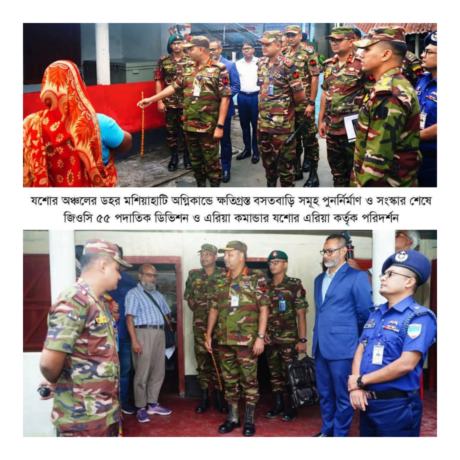 গত ১২ জুলাই, কাজ সম্পন্ন হয় এবং আজ ১৫ জুলাই জিওসি ৫৫ পদাতিক ডিভিশন এবং এরিয়া কমান্ডার, যশোর এরিয়া আনুষ্ঠানিকভাবে ক্ষতিগ্রস্ত পরিবারের মাঝে নতুন ঘর হস্তান্তর করেন।