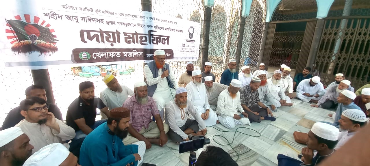 আজ বাদ জুমআ বায়তুল মোকাররম উত্তর চত্বরে খেলাফত মজলিস ঢাকা মহানগরী দক্ষিণ সভাপতি অধ্যাপক মাওলানা আজিজুল হকের সভাপতিত্বে ও সাধারণ সম্পাদক আবুল হোসেনের পরিচালনায় অনুষ্ঠিত আলোচনা সভা ও দোয়া মাহফিলে বক্তব্য রাখেন, সিনিয়র যুগ্ম মহাসচিব এডভোকেট জাহাঙ্গীর হোসাইন, যুগ্ম-মহাসচিব ড. মোস্তাফিজুর রহমান ফয়সল, অধ্যাপক আবদুল জলিল, কেন্দ্রীয় সাংগঠনিক সম্পাদক অধ্যাপক কাজী মিনহাজুল আলম, কেন্দ্রীয় প্রশিক্ষণ সম্পাদক জহিরুল ইসলাম, কেন্দ্রীয় আইন বিষয়ক সম্পাদক এডভোকেট শায়খুল ইসলাম, কেন্দ্রীয় নির্বাহী সদস্য হাজী নুর হোসেন, আমীর আলী হাওলাদার, শ্রমিক মজলিস সাধারণ সম্পাদক এইচ. এম এরশাদ, মহানগরী দক্ষিণ সহ-সাধারণ সম্পাদক এইচ. এম হুমায়ুন কবির আযাদ, কাজী আরিফুর রহমান, মাওলানা সরদার নেয়ামত উল্লাহ, সেলিম হোসাইন, মুহাম্মদ গিয়াস উদ্দিন, শাহাবুদ্দিন, ইসলামী যুব মজলিস ঢাকা মহানগরী দক্ষিণ সভাপতি মাওলানা মনসুরুল আলম, ছাত্র মজলিস মহানগরী দক্ষিণ সভাপতি মুহাম্মদ সাইফুদ্দিন প্রমুখ।