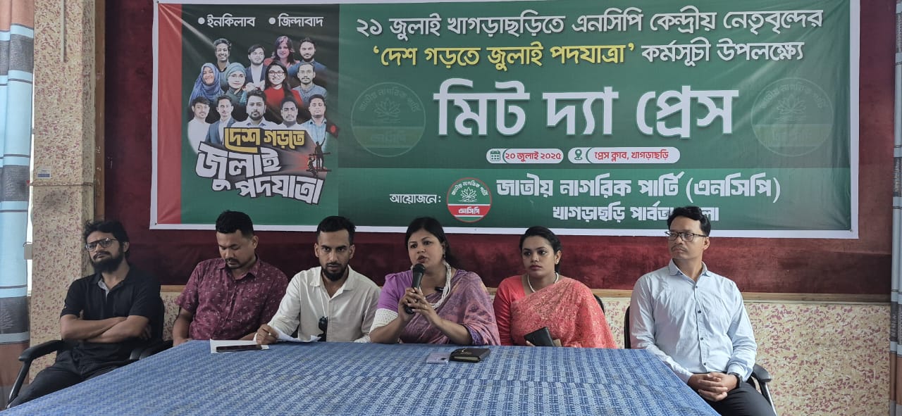মিট দ্য প্রেস অনুষ্ঠানে আরও উপস্থিত ছিলেন এনসিপি যুবশক্তির কেন্দ্রীয় সংগঠক মো. হারিচুর রহমান (রনি), খাগড়াছড়ি জেলা সংগঠক বিপ্লব ত্রিপুরা, শাহ নেওয়াজ, আকলিমা আক্তার, সুবোধ চাকমা এবং জেলা কমিটির নেতৃবৃন্দ।