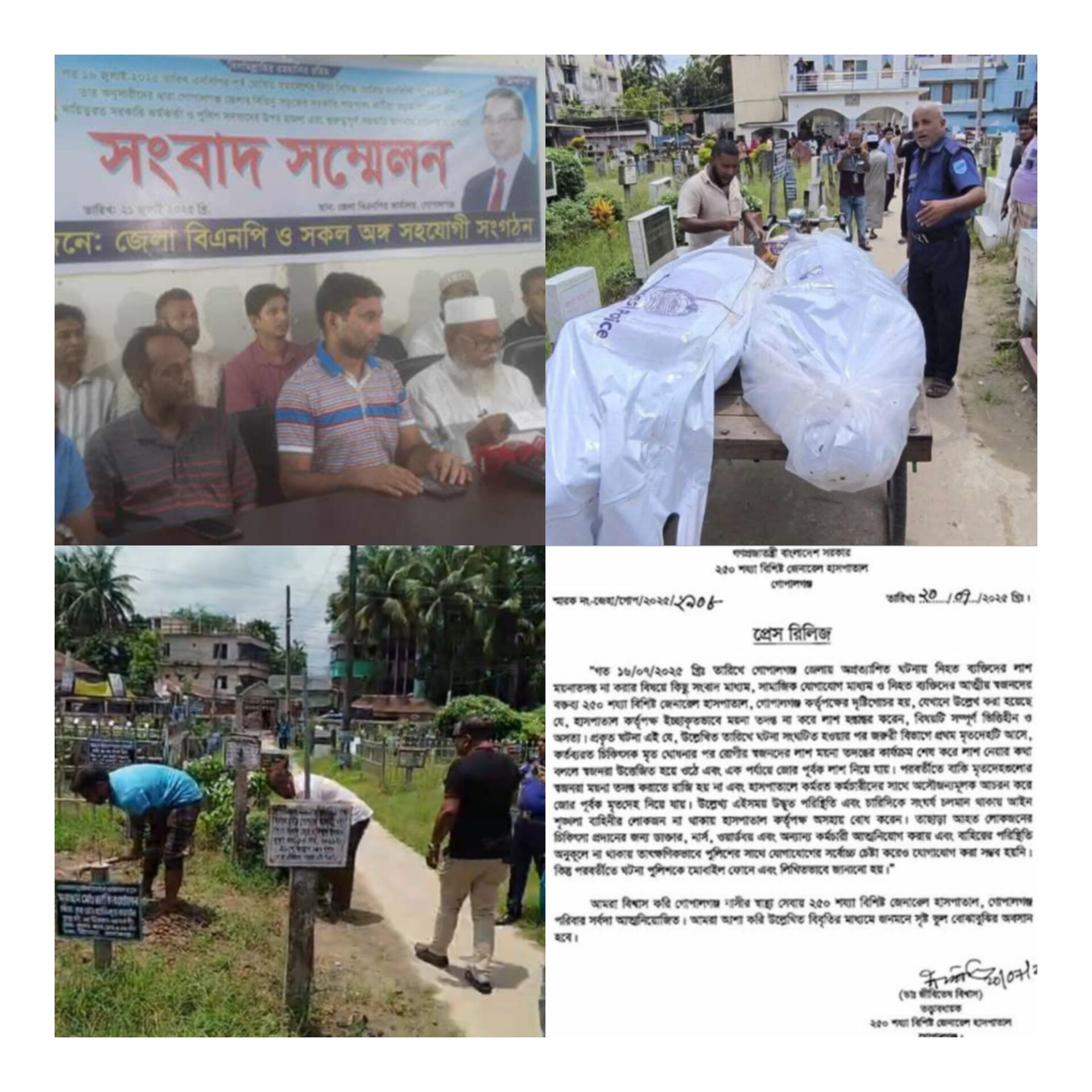 !!  বিশেষ প্রতিবেদন   !! গোপালগঞ্জ জেলা  বিএনপির সংবাদ সম্মেলন  !!  ১৬ জুলাইয়ের ঘটনায় অভিযোগ পাল্টা অভিযোগ !! ময়নাতদন্তের জন্য তিনজনের লাশ উত্তোলন !! ৯৫ জন বন্দীকে যশোর ও পিরোজপুর কারাগারে প্রেরণ !!