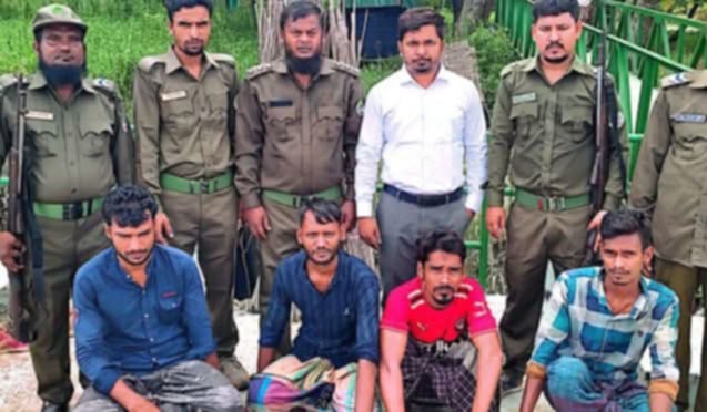 এগিয়ে গিয়ে বনরক্ষীরা নৌকাসহ ৪ জন জেলেকে আটক করেন। এ সময় নৌকায় থাকা দুইশতাধিক কাকড়া ধরার নিষিদ্ধ চারু ও ৫০ কেজি কুচিয়া জব্দ করা হয় ।