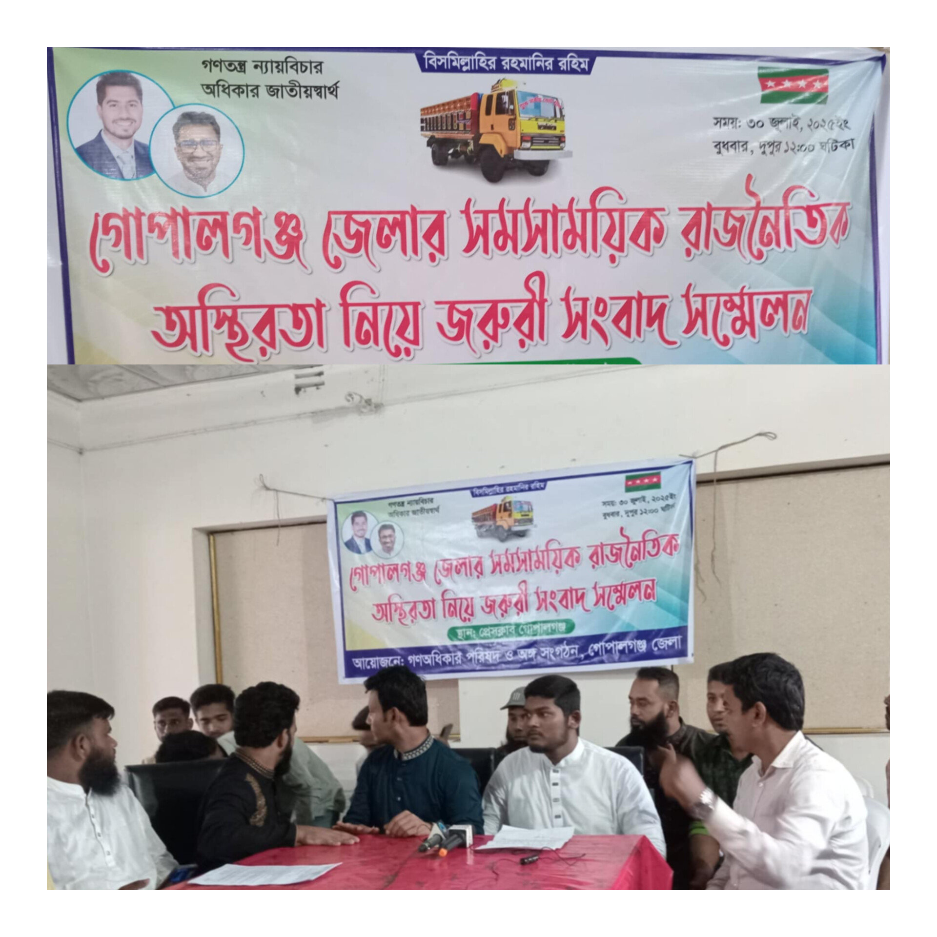 সংবাদ সম্মেলনে গনঅধিকার পরিষদ নেতৃবৃন্দ বলেন, গত ১৬ জুলাই “জাতীয় নাগরিক পার্টির (এনসিপি) পদযাত্রা নামক কর্মসূচিকে ঘিরে তৈরি হওয়া বিশৃঙ্খলাকে কেন্দ্র করে, গোপালগঞ্জের জনসাধারণের মাঝে রাজনৈতিকভাবে এক ধরনের অস্থিতিশীল পরিস্থিতি বিরাজ করছে।