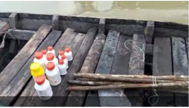 শরণখোলা (বাগেরহাট) প্রতিনিধি : সুন্দরবনের শরণখোলা রেঞ্জের দুবলার চর এলাকার খালে অভিযান চালিয়ে একটি ট্টলার তিনটি নৌকা, ১১ বোতল কীটনাশক সহ ৮ জেলেকে আটক করেছে বনরক্ষীরা। গত রবিবার ৩ জুলাই রাত সাড়ে সাতটার দিকে বনরক্ষীরা অভিযান চালিয়ে তাদের আটক করে।