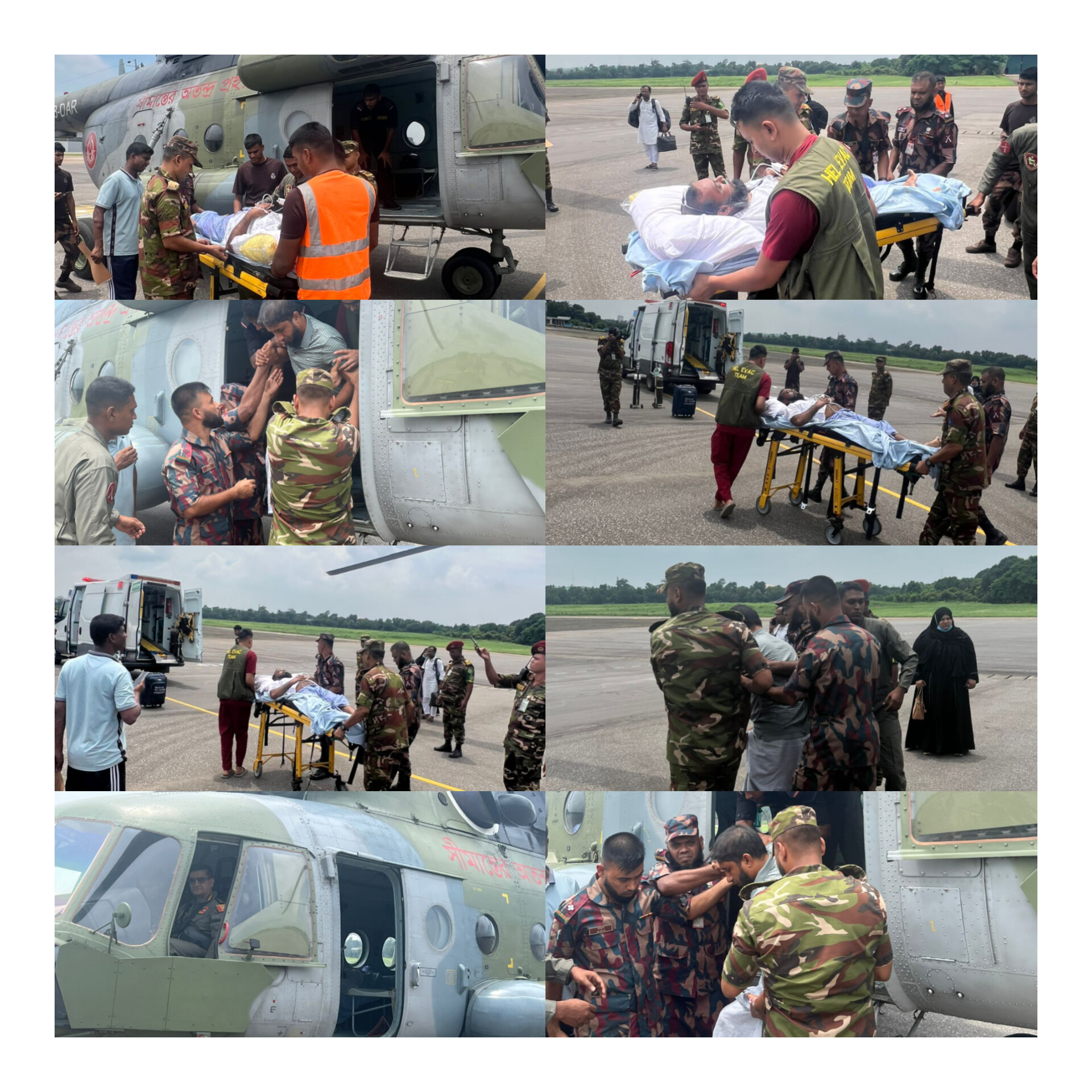 আহতদের উন্নত চিকিৎসার জন্য বর্ডার গার্ড বাংলাদেশ (বিজিবি) এর হেলিকপ্টারযোগে রামু ক্যান্টনমেন্ট থেকে ঢাকায় আনা হয়েছে।