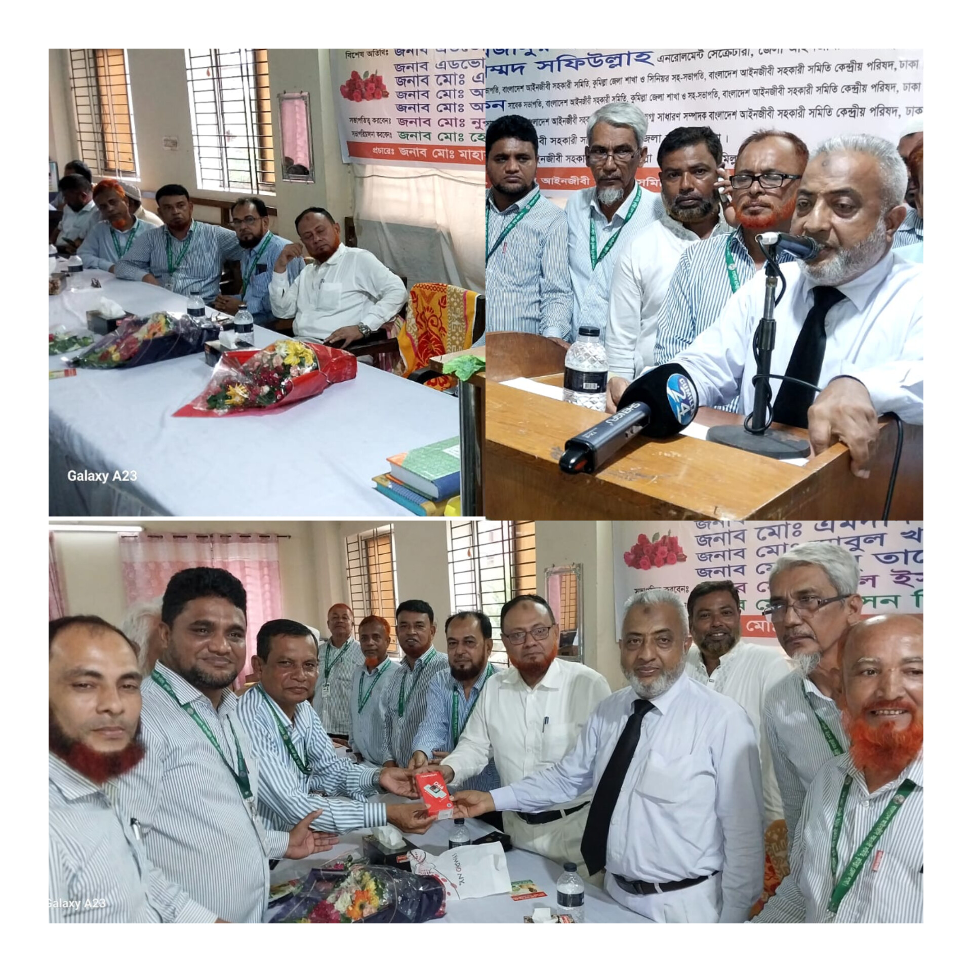 বাংলাদেশ আইনজীবী সহকারী সমিতি কুমিল্লা জেলা শাখার সভাপতি মোঃ নুরুল ইসলাম এর সভাপতিত্বে সভায় প্রধান অতিথির বক্তব্য রাখেন- কুমিল্লা জেলা আইনজীবী সমিতির সভাপতি অ্যাডভোকেট মোঃ শহিদুল্লাহ এবং বিশেষ অতিথির বক্তব্য রাখেন- জেলা আইনজীবী সমিতির সাধারণ সম্পাদক অ্যাডভোকেট খন্দকার মিজানুর রহমান, বাংলাদেশ আইনজীবী সহকারী সমিতি কেন্দ্রীয় পরিষদের সিনিয়র সহ-সভাপতি ও বাংলাদেশ আইনজীবী সহকারী সমিতি কুমিল্লা জেলা আইনজীবী সহকারী সমিতির সাবেক সভাপতি মোঃ এমদাদ হোসেন, বাংলাদেশ আইনজীবী সহকারী সমিতি কেন্দ্রীয় পরিষদের সহ-সভাপতি ও বাংলাদেশ আইনজীবী সহকারী সমিতি কুমিল্লা জেলা শাখার সাবেক সভাপতি মোঃ আবুল খায়ের খোকন, বাংলাদেশ আইনজীবী সহকারী সমিতি কেন্দ্রীয় পরিষদের যুগ্ম সাধারণ সম্পাদক ও বাংলাদেশ আইনজীবী সহকারী সমিতি কুমিল্লা জেলা শাখার সাবেক সভাপতি মোঃ আবু তাহের কালন এবং অনুষ্ঠানে স্বাগত বক্তব্য রাখেন বাংলাদেশ আইনজীবী সহকারী সমিতির সভাপতি মোঃ নুরুল ইসলাম।