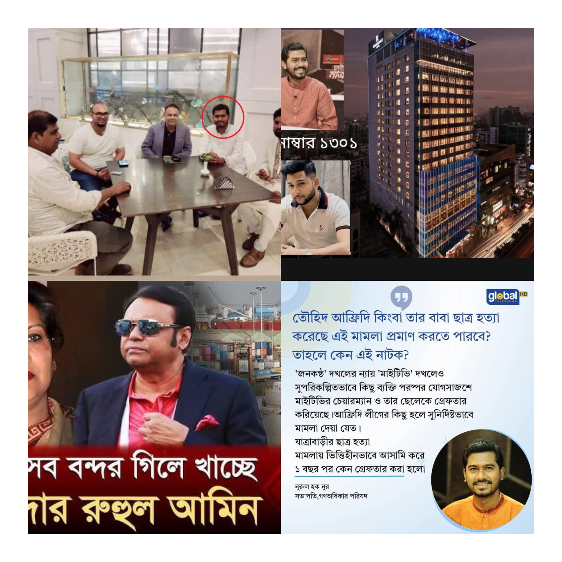 নিজস্ব প্রতিবেদক : গত বছরের ৫ আগষ্টে সাবেক আওয়ামী ফ্যাসিবাদী সরকার পতনের কয়েকদিন পর রাজধানীর একটি হোটেলে শেখ রেহানার ক্যাশিয়ার হিসেবে পরিচিত বন্দরখেকো সাইফ পাওয়ার টেকের কর্নধর তরফদার রুহুল আমিনের সাথে বৈঠক করে নুরুল হক নুর। সরকার পতনের পর তরফদার রুহুল আমিনকে সুরক্ষা দেয়ার জন্য-ই মিটিংটি’র আয়োজন করা হয়েছিল।