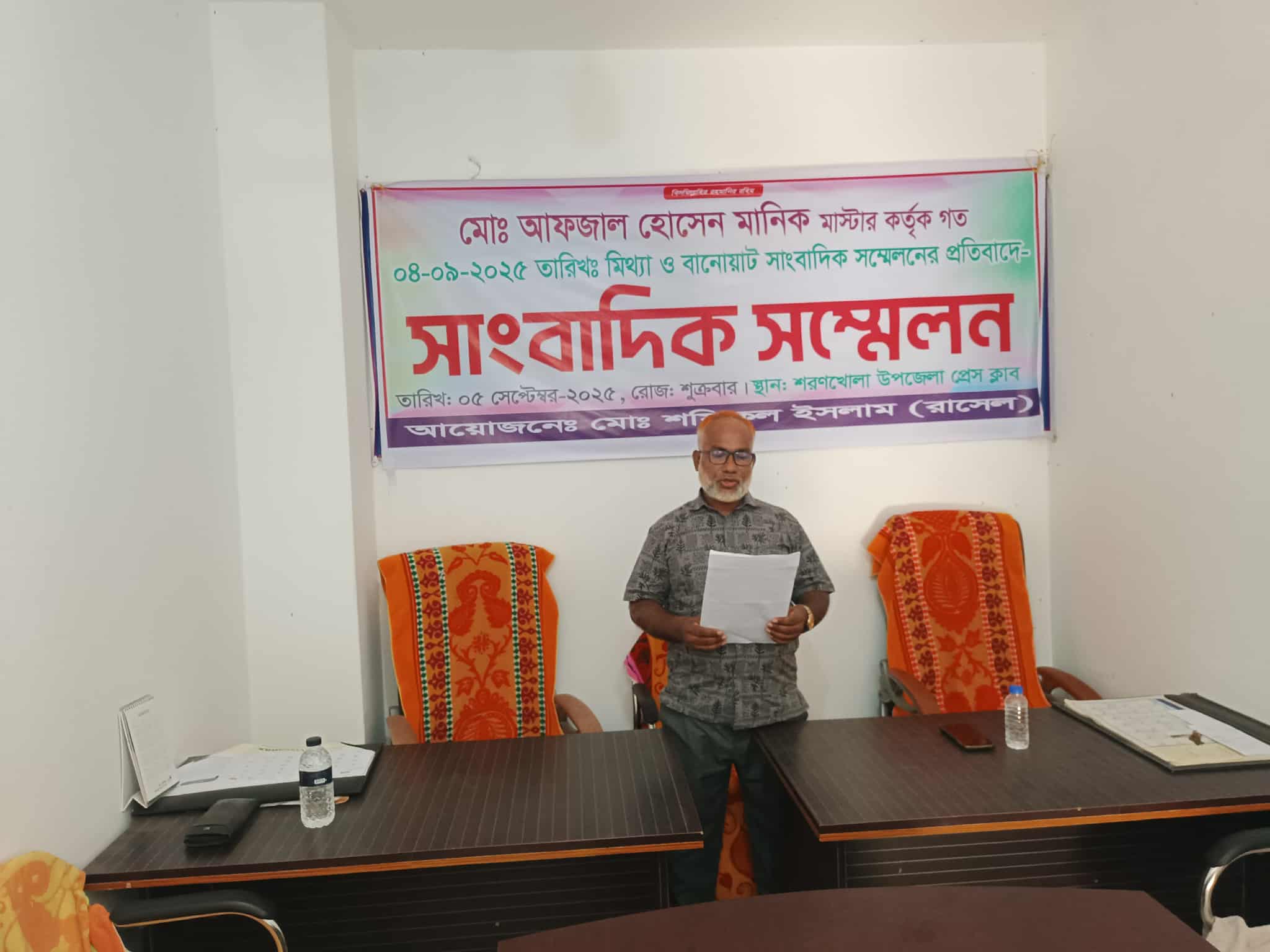 শরণখোলা (বাগেরহাট) প্রতিনিধি : বাগেরহাটের শরণখোলায় আনোয়ার হোসেন মাধ্যমিক বিদ্যালয় প্রধান শিক্ষক আফজাল হোসেন মানিক সন্ত্রাসী কর্তৃক সরকারি কলেজ শিক্ষক এর বাড়ি ঘর ভাঙচুর ও লুটপাটের ঘটনা আড়াল করতে মিথ্যা তথ্য দিয়ে সংবাদ সম্মেলন করার প্রতিবাদে পাল্টা সংবাদ সম্মেলন করেছেন কলেজ শিক্ষক মোহাম্মদ শরিফুল ইসলাম রাসেল।