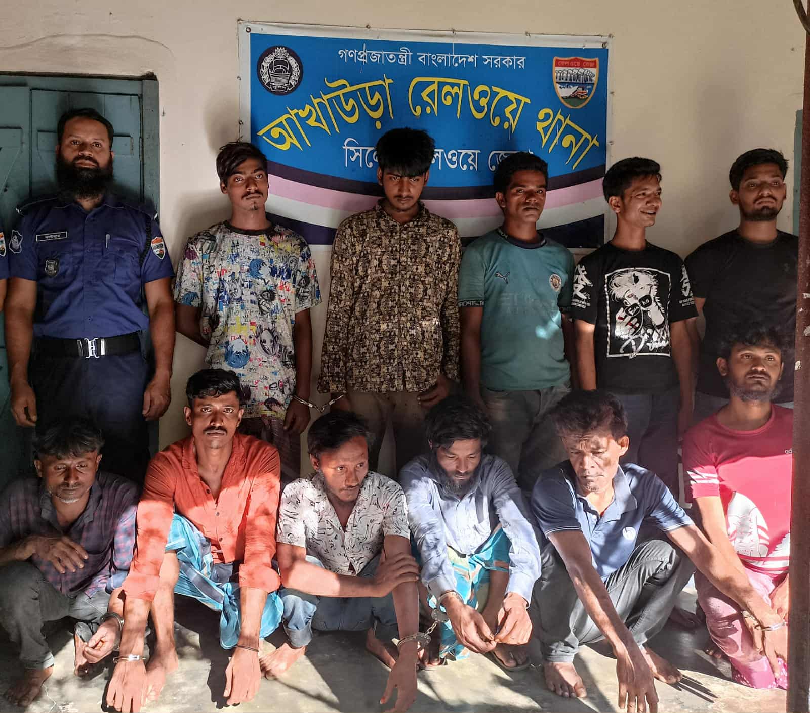 আটককৃতরা হলো মোঃ আকলিমা আক্তার (৩৫) সাগর (২৫), শেখ শামীম (৪৫), মোঃ রতন (২৪), মোঃ জানু (৩৫), মিজান (৩০), মিজানুর রহমান (২২), রায়হান মুন্সী (২৩), সুমন মিয়া (৩২), জুবাইদ আলী (৪০), মোঃ রাসেল (২৭), আকাশ ও হোসেন (৩২)।