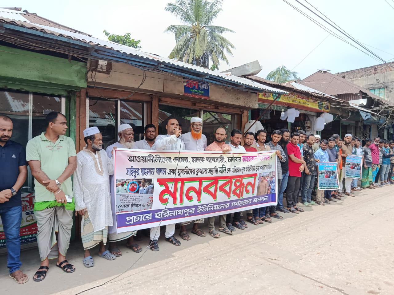 হিজলা প্রতিনিধি (হিজলা) : বরিশাল জেলার হিজলা উপজেলার হরিনাথপুর বাজারে বুধবার,সকাল ১১ টায় স্থানীয় জনগণের ব্যানারে ইউনিয়ন বিএনপির যুগ্ম আহ্বায়ক মাজহারুল ইসলাম, বিএনপি নেতা সাইদুর রহমান বাদল মুন্সী ও ফ্যাসিস্টের দোসর যুবলীগ নেতা জনির বিরুদ্ধে একটি মানববন্ধন অনুষ্ঠিত হয়েছে। মানববন্ধনে বক্তব্যে নুর হোসেন সুজন বলেন,আমি বরিশাল জেলার জাতীয়তাবাদী ছাত্রদলের সহ-সভাপতি এবং বিএনপির একজন সক্রিয় কর্মী।
