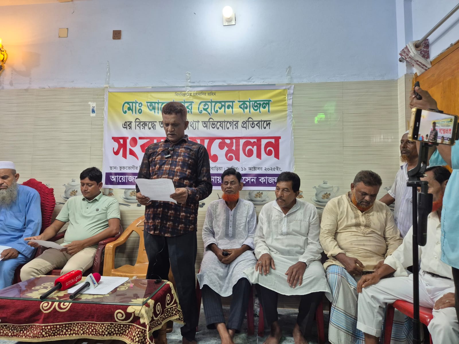 গতকাল শনিবার সকালে আখাউড়ার নিজ বাসভবনে আয়োজিত সংবাদ সম্মেলনে লিখিত বক্তব্যে তিনি বলেন, “গত ১৭ অক্টোবর শুক্রবার সকালে আখাউড়া সড়ক বাজারে একটি মানববন্ধন করে আমার বিরুদ্ধে নানা ধরনের মিথ্যা, বানোয়াট ও বিদ্বেষমূলক বক্তব্য দেওয়া হয়েছে। আমি এ মানববন্ধনের তীব্র নিন্দা ও প্রতিবাদ জানাই।”
