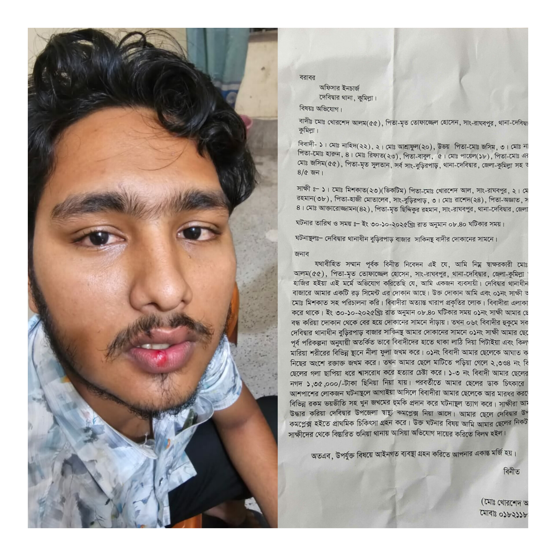 বাদী খোরশেদ আলম জানান, “বিবাদীরা এলাকায় চুরি-ছিনতাইসহ বিভিন্ন অপরাধমূলক কর্মকাণ্ডে জড়িত। ঘটনার রাতে আমার ছেলে দোকান বন্ধ করে বাইরে দাঁড়ানো অবস্থায় স্বৈরাচার আওয়ামী কৃষকলীগের ওয়ার্ড সভাপতি জসিমের নেতৃত্বে বিবাদীরা হঠাৎ হামলা চালায়। তারা লাঠি দিয়ে আঘাত করে এবং লাথি মেরে আমার ছেলেকে মাটিতে ফেলে দেয়। পরে নাঈম, রিফাত ও আশরাফুল তার গলা চেপে ধরে হত্যার চেষ্টা করে। এ সময় তারা তার কাছে থাকা ১ লাখ ৩৫ হাজার টাকা ছিনিয়ে নেয়।”