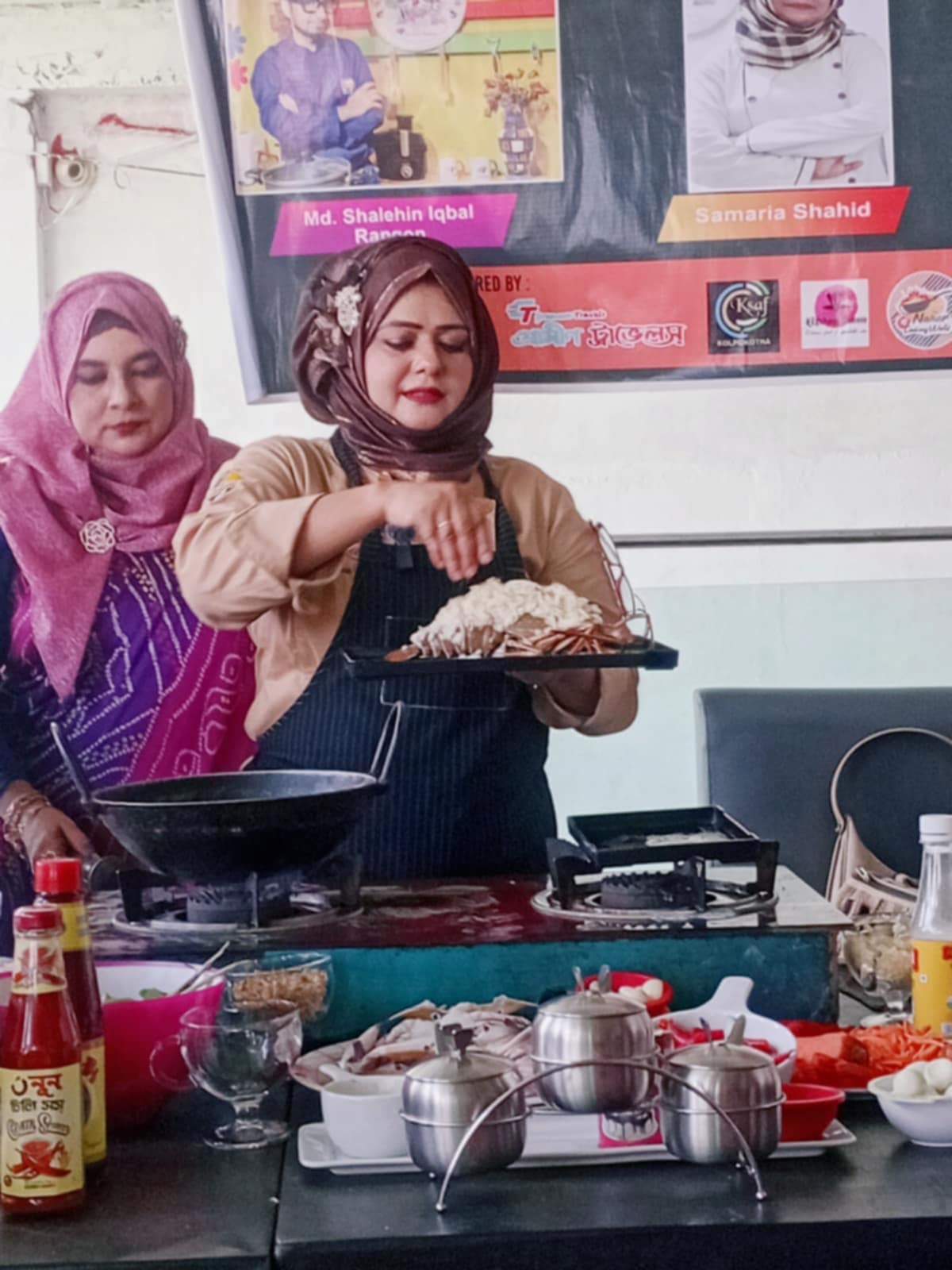 নিজস্ব প্রতিবেদক : রঙ্গন রাধুনি রান্নাঘর ও কল্পকথা(KSF) উদ্যোগে খুলনায় এই প্রথম অনুষ্ঠিত হলো দিনব্যাপী সি-ফুড কর্মশালা। প্রশিক্ষক হিসেবে ছিলেন সেলিব্রিটি শেফ হাসিনা আনছার নাহার।