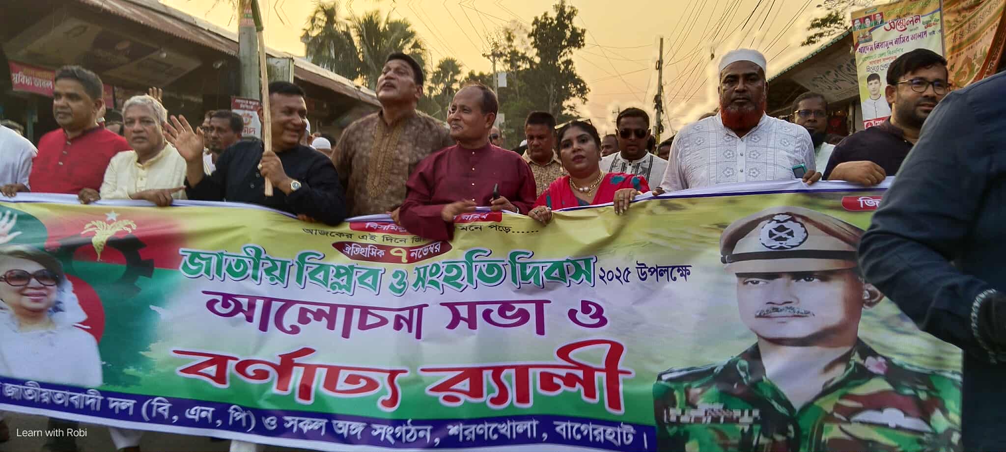 নইন আবু নাঈম তালুকদার, (শরণখোলা) : জাতীয় বিপ্লব ও সংহতি দিবস উপলক্ষে বাগেরহাটের শরণখোলায় বর্ণাঢ্য রেলি ও পথসভা অনুষ্ঠিত হয়েছে।