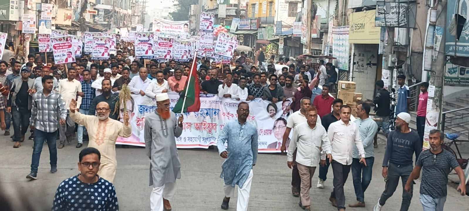 সুমন হোসেন, (যশোর) : আসন্ন ত্রয়োদশ জাতীয় সংসদ নির্বাচনকে সামনে রেখে ৮৮/যশোর-৪ (অভয়নগর- বাঘারপাড়া ও বসুন্দিয়া ইউনিয়ন) আসনে বিএনপি’র মনোনীত ধানের শীষের প্রার্থী ইঞ্জিনিয়ার টি. এস. আইয়ুব’র পক্ষে প্রচার মিছিল করেছেন অভয়নগর উপজেলা ও নওয়াপাড়া পৌর বিএনপি’র এবং অঙ্গ সহযোগী সংগঠনের নেতৃবৃন্দ।