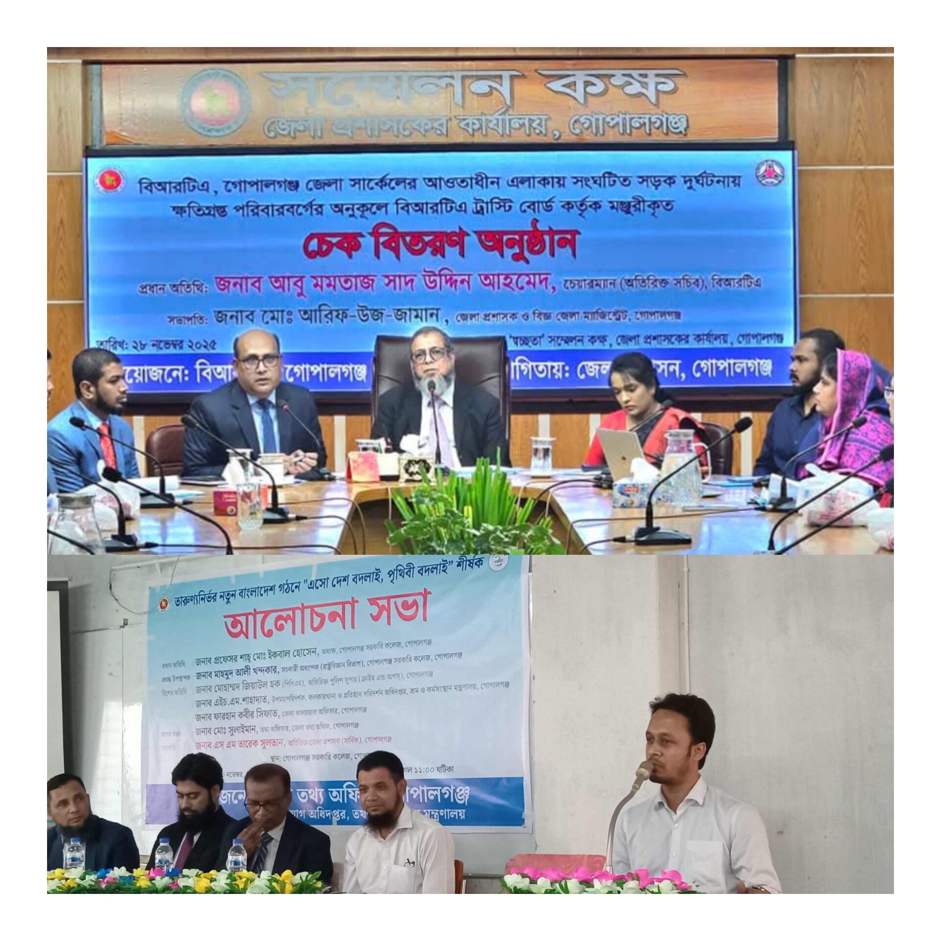 গোপালগঞ্জে সড়ক দুর্ঘটনায় ক্ষতিগ্রস্ত পরিবারের মধ্যে ক্ষতিপূরনের চেক বিতরণ