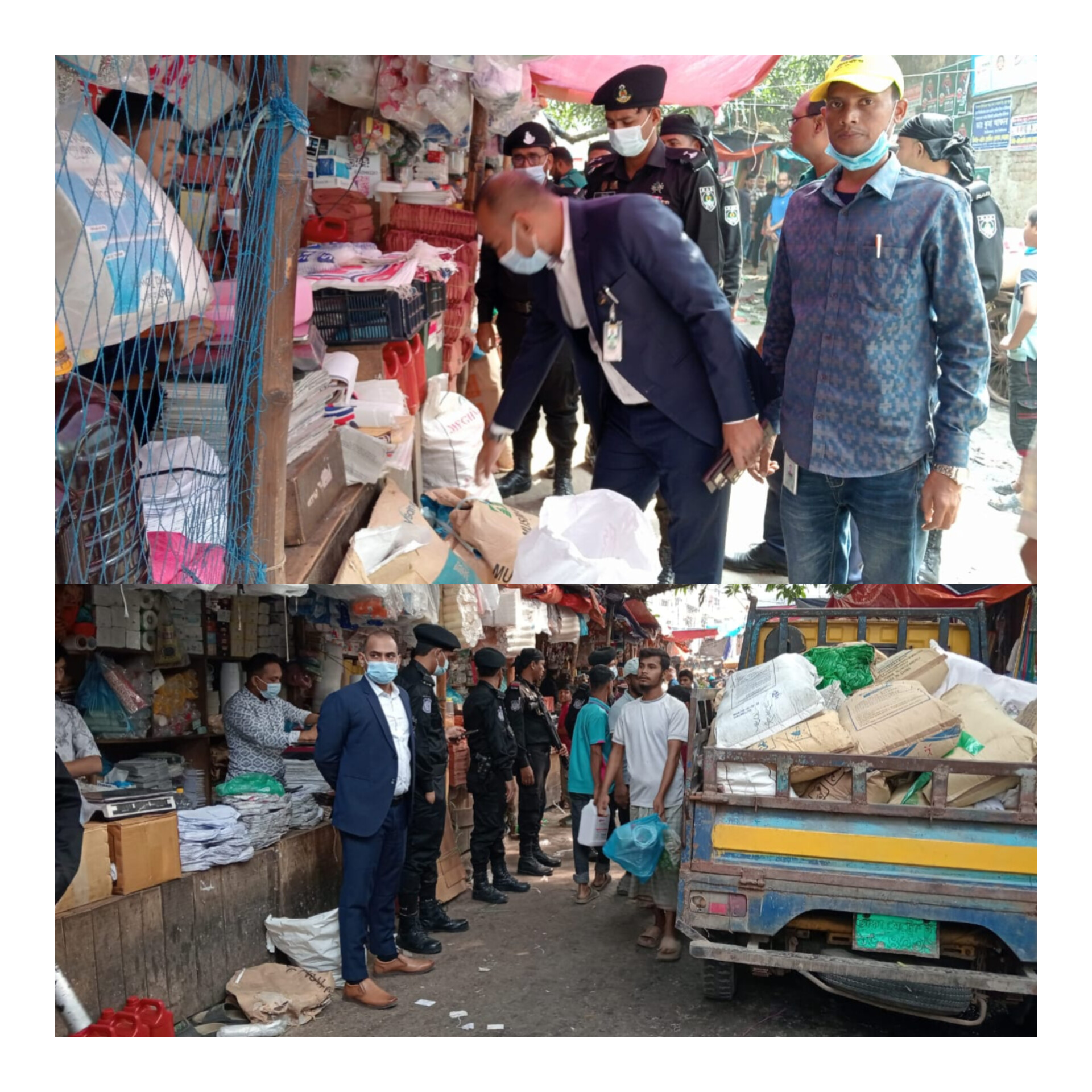 রাজধানীতে র‍্যাব-৪ এবং পরিবেশ অধিদপ্তর এর যৌথ অভিযানে ৮৮০ কেজি নিষিদ্ধ পলিথিন জব্দ