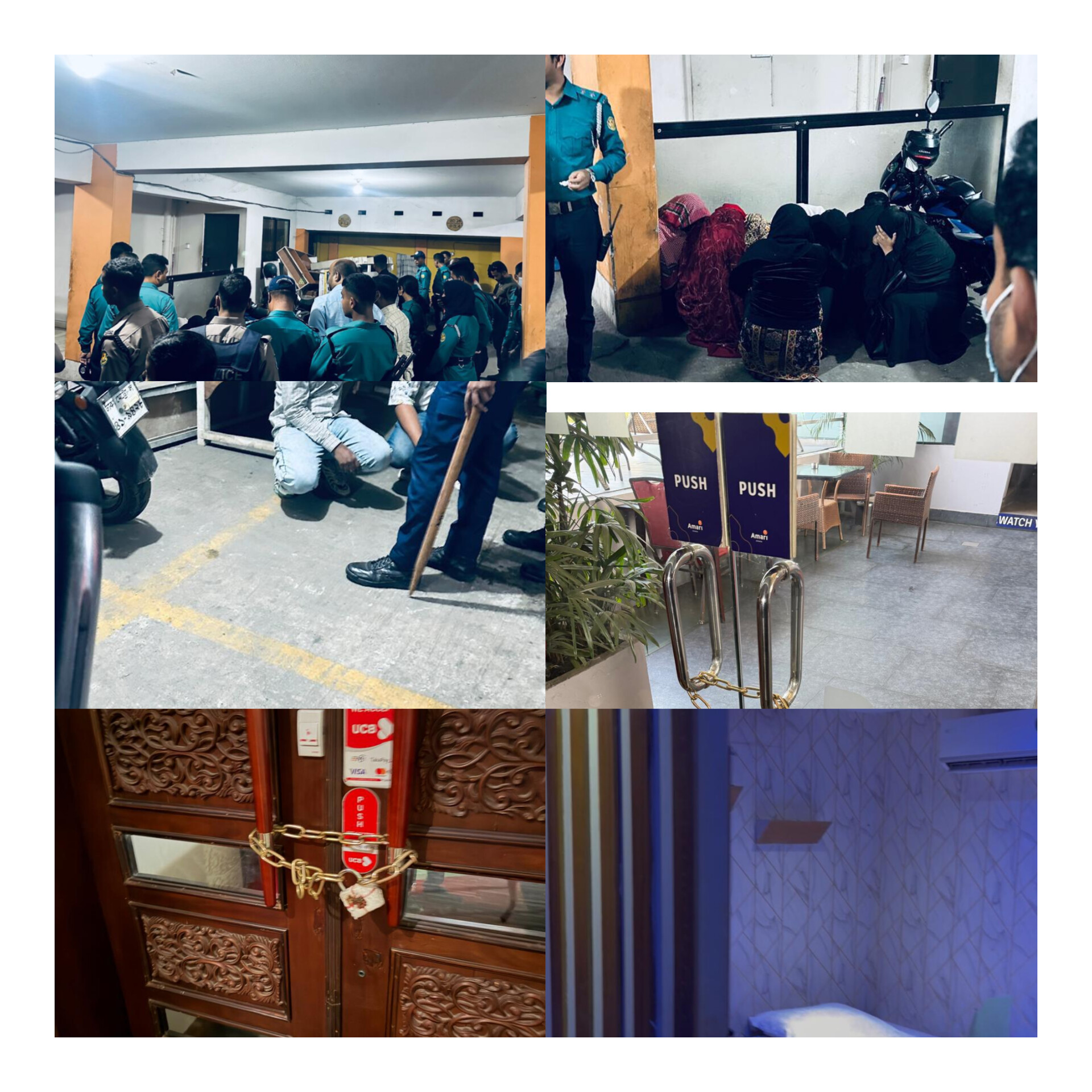 নিজস্ব প্রতিবেদক : গত বৃহস্পতিবার ৪ ডিসেম্বর, রাজধানী উন্নয়ন কর্তৃপক্ষ (রাজউক) এর জোন ৪/২ এর আওতাধীন গুলশান এলাকায় গড়ে ওঠা অবৈধ স্থাপনা অপসারণের লক্ষ্যে বিজ্ঞ নির্বাহী ম্যাজিস্ট্রেট জনাব মোঃ লিটন সরকারের নেতৃত্বে মোবাইল কোর্ট পরিচালিত হয়। এসময় আবাসিক ভবনে অননুমোদিত অ-আবাসিক/বাণিজ্যিক ব্যবহারের ফলে মোট ০৭ টি আবাসিক হোটেল ও সেলুন/স্পা সিলগালা করা হয়। এসময় ০৯ জন নারী ও ০৫ জন পুরুষকে থানায় সোপর্দ করা হয়।
