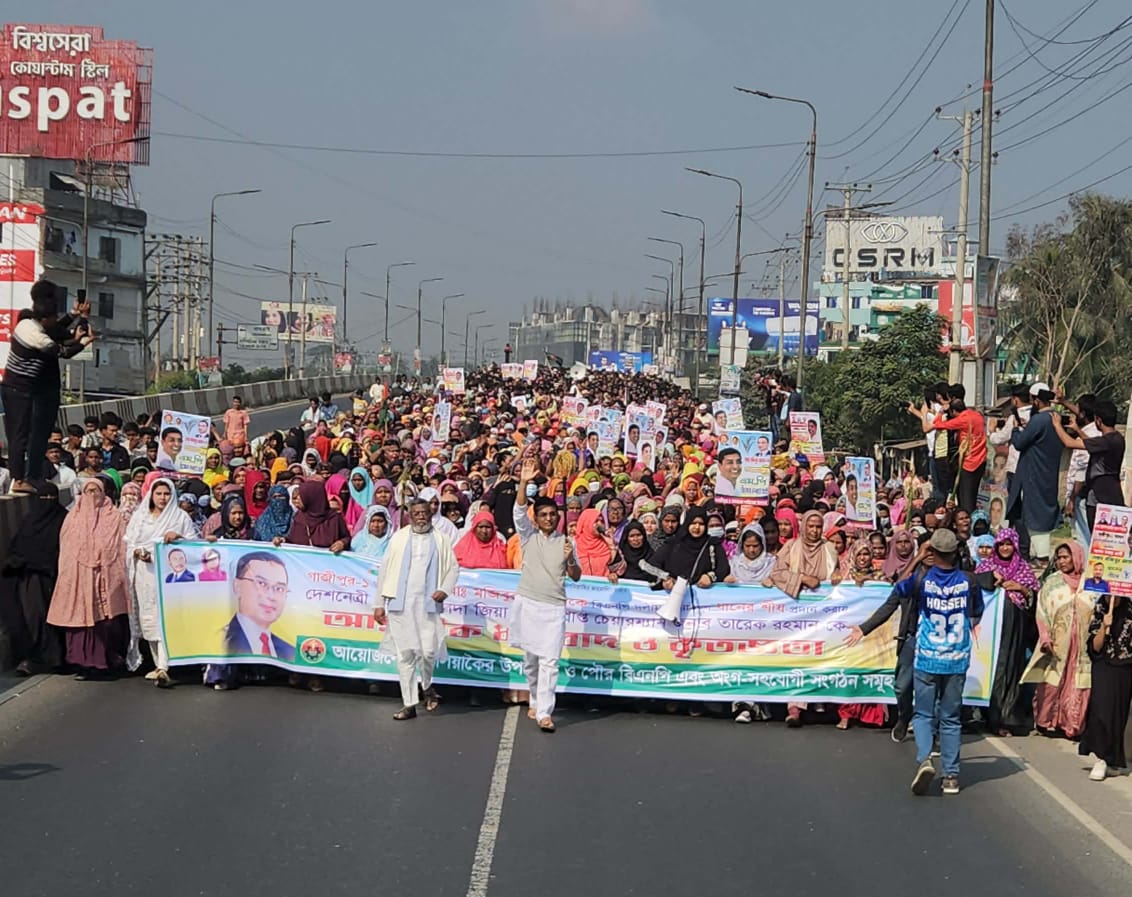 এ লক্ষ্যে গাজীপুর-১ আসনের কোনাবাড়ি কাশিমপুর সহ কালিয়াকৈর উপজেলার বিভিন্ন এলাকা থেকে প্রায় লক্ষাধিক লোক স্বতঃস্ফুর্ত ভাবে কালিয়াকৈর ট্রাক স্টেশন এলাকায় জড়ো হন।