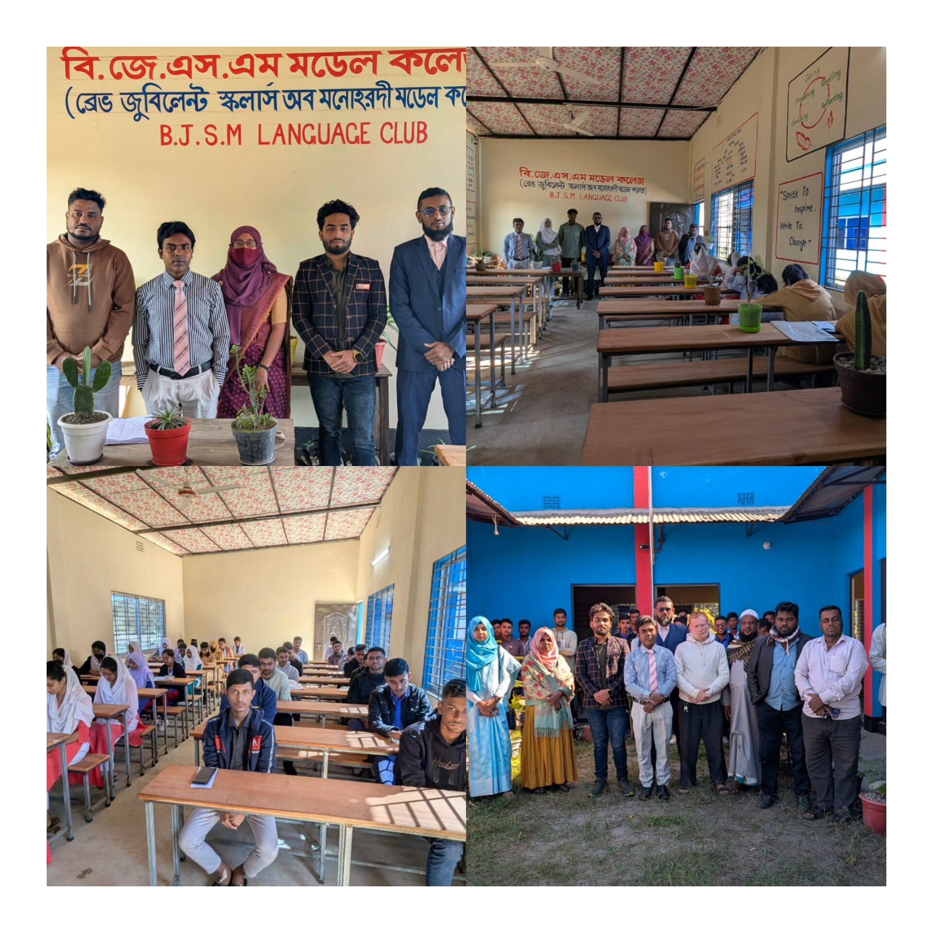 বি.জে.এস.এম মডেল কলেজ প্রতিষ্ঠিত হয় ০৯ সেপ্টেম্বর ২০০৯ সালে এবং এটি রসুলপুর, হাতিরদিয়া, মনোহরদী, নরসিংদী এলাকায় অবস্থিত। কলেজ কোড ৩০৭৪। প্রতিষ্ঠালগ্ন থেকেই প্রতিষ্ঠানটি গুণগত শিক্ষা, শৃঙ্খলা ও নৈতিক মূল্যবোধ গঠনে গুরুত্বপূর্ণ ভূমিকা রেখে চলেছে। শিক্ষাবিদ ও অভিভাবকরা মনে করছেন, এ ধরনের মেধাবৃত্তি পরীক্ষা শিক্ষার্থীদের লক্ষ্যনির্ধারণে সহায়ক হবে এবং মনোহরদী উপজেলার সামগ্রিক শিক্ষা উন্নয়নে ইতিবাচক প্রভাব ফেলবে।