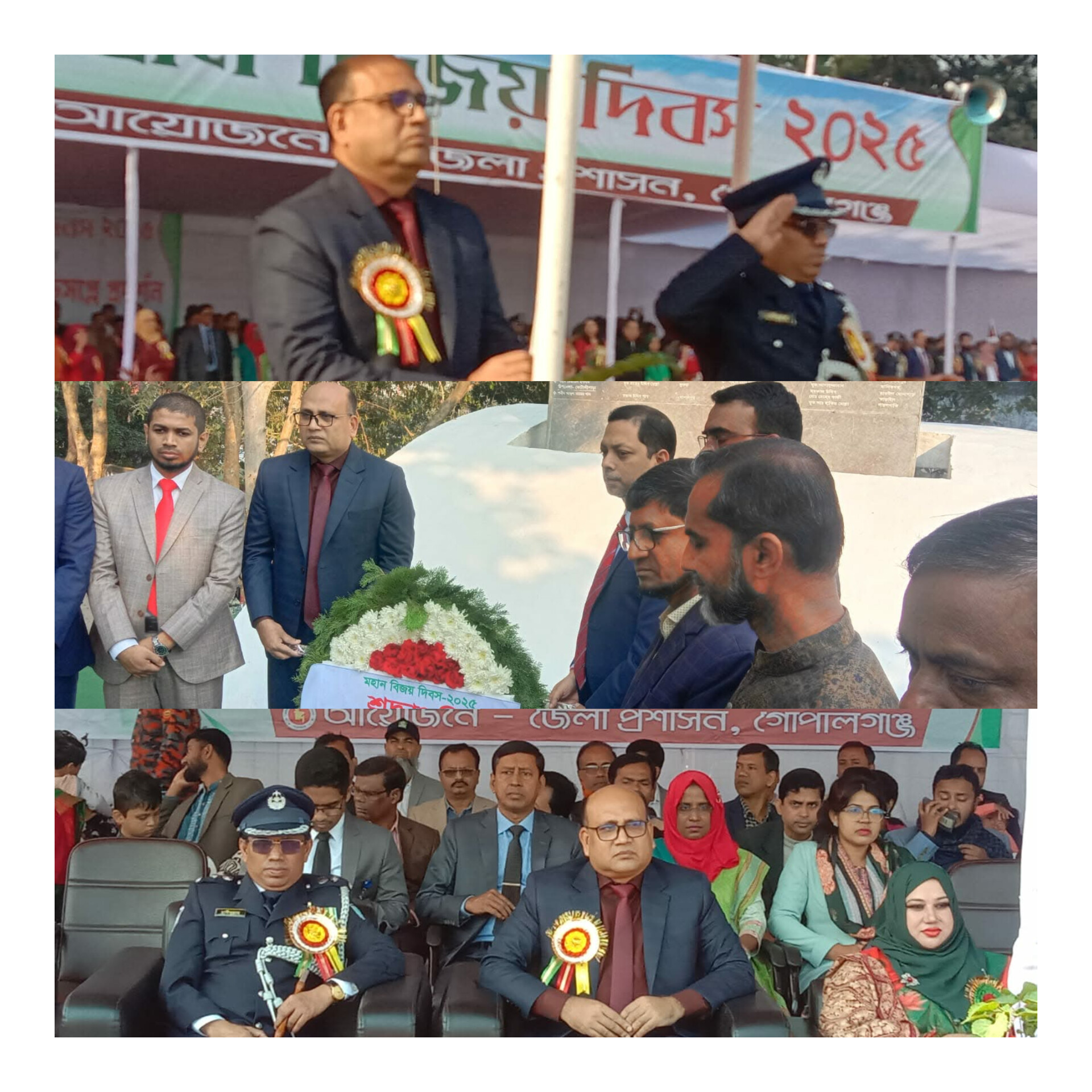 ১৬ ডিসেম্বর, ২০২৫-এর সূর্যোদয়ের সাথে সাথে গোপালগঞ্জ ক্রিকেট স্টেডিয়াম সংলগ্ন এলাকায় ৩১ বার তোপধ্বনির মাধ্যমে দিবসটির ঐতিহাসিক সূচনা করা হয়। এসময় সরকারি, আধা-সরকারি, স্বায়ত্তশাসিত এবং বেসরকারি ভবনসমূহে জাতীয় পতাকা উত্তোলন করা হয়।