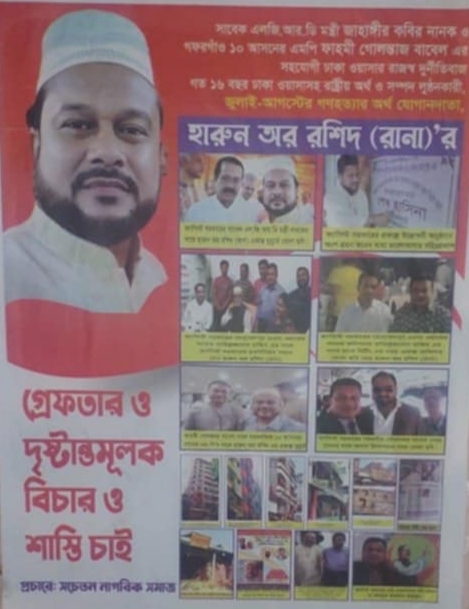 ফ্যাসিস্ট আওয়ামী দোসর হারুন রানা অর্থের বিনিময়ে নেতাদের ম্যানেজ করে এখন বিএনপির তকমা লাগিয়ে অপকর্মের শাস্তি থেকে বাঁচার অপচেষ্টা চালাচ্ছে।